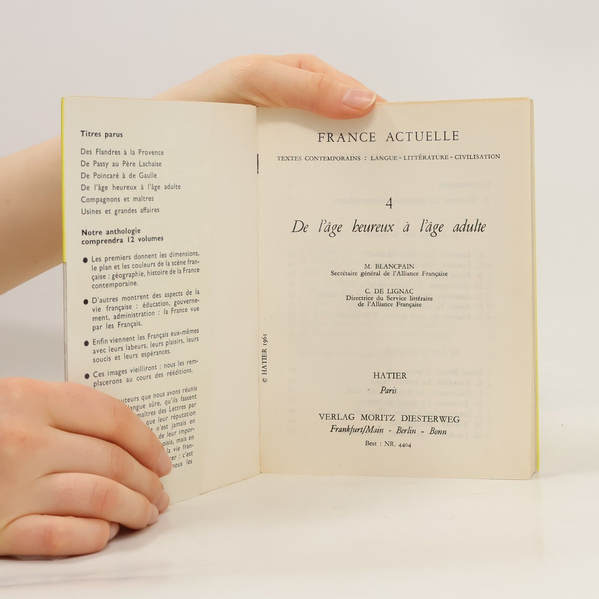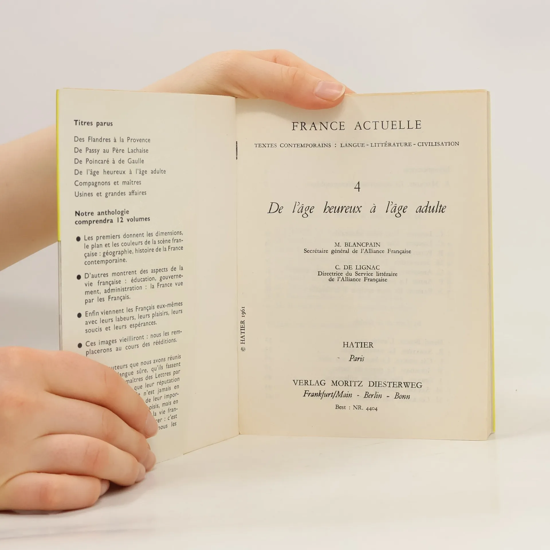 France actuelle. Textes contemporains 4. De l'âge heureux à l'âge adulte,, M. Blancpain, C. de Lignac