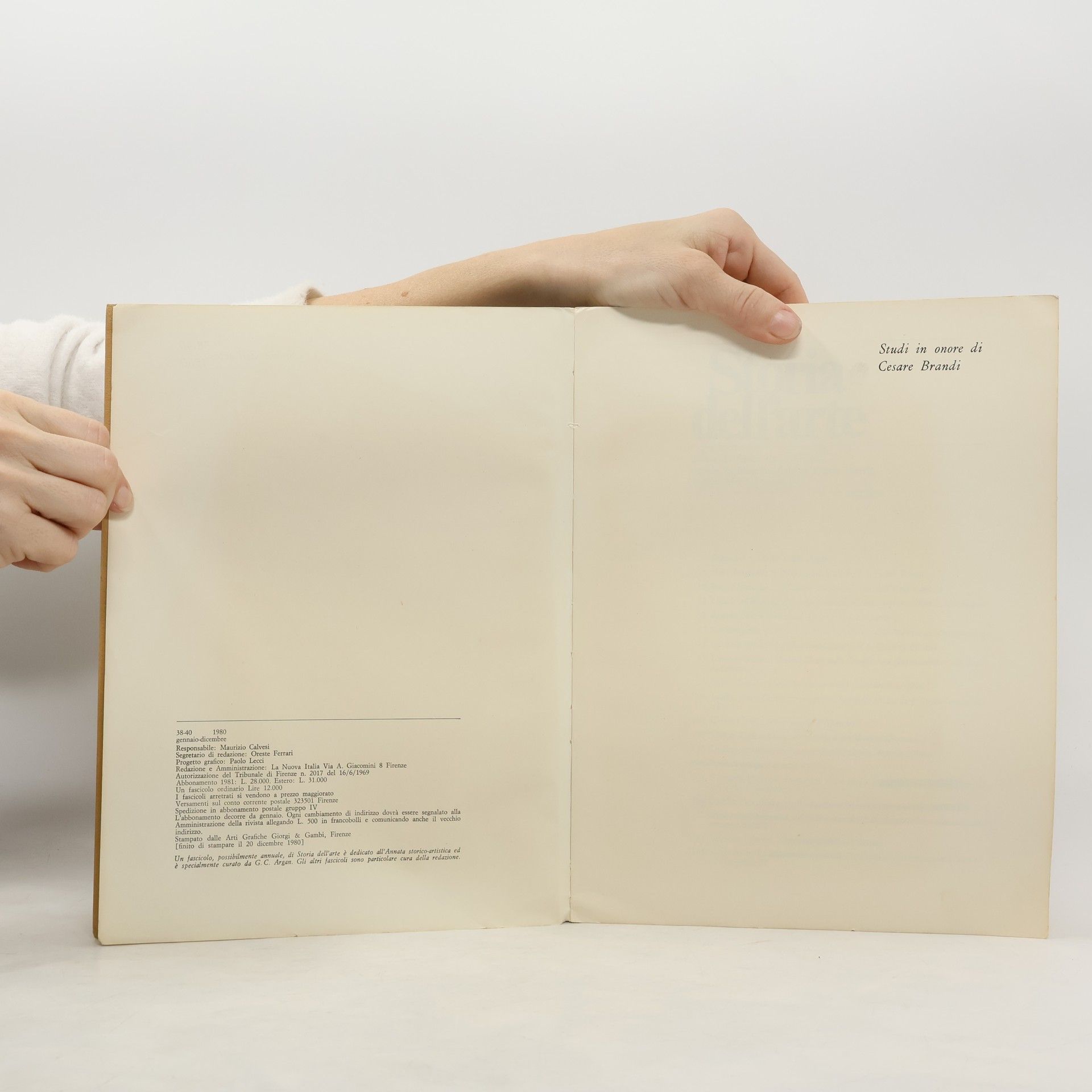 Ci sono attualmente del libroStoria dell'arte 38/40 (1980 ) in magazzino.