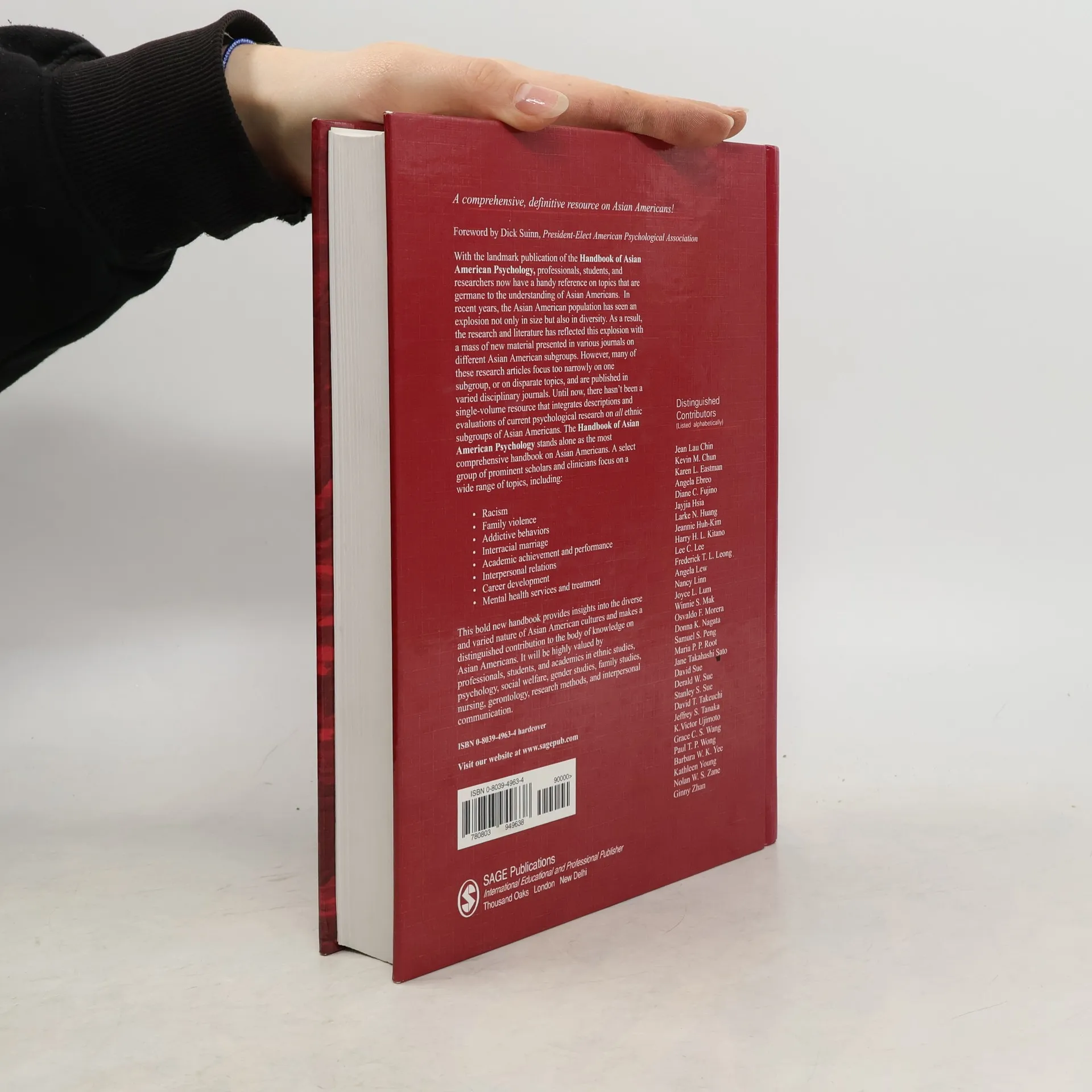 This comprehensive volume, now available in paperback, examines current research and constructs necessary for improving our understanding of Asian Americans. The contributors focus on a wide range of topics, including racism, family violence, addictive behaviours, interracial marriage, academic achievement, interpersonal relationships, career development and mental health.