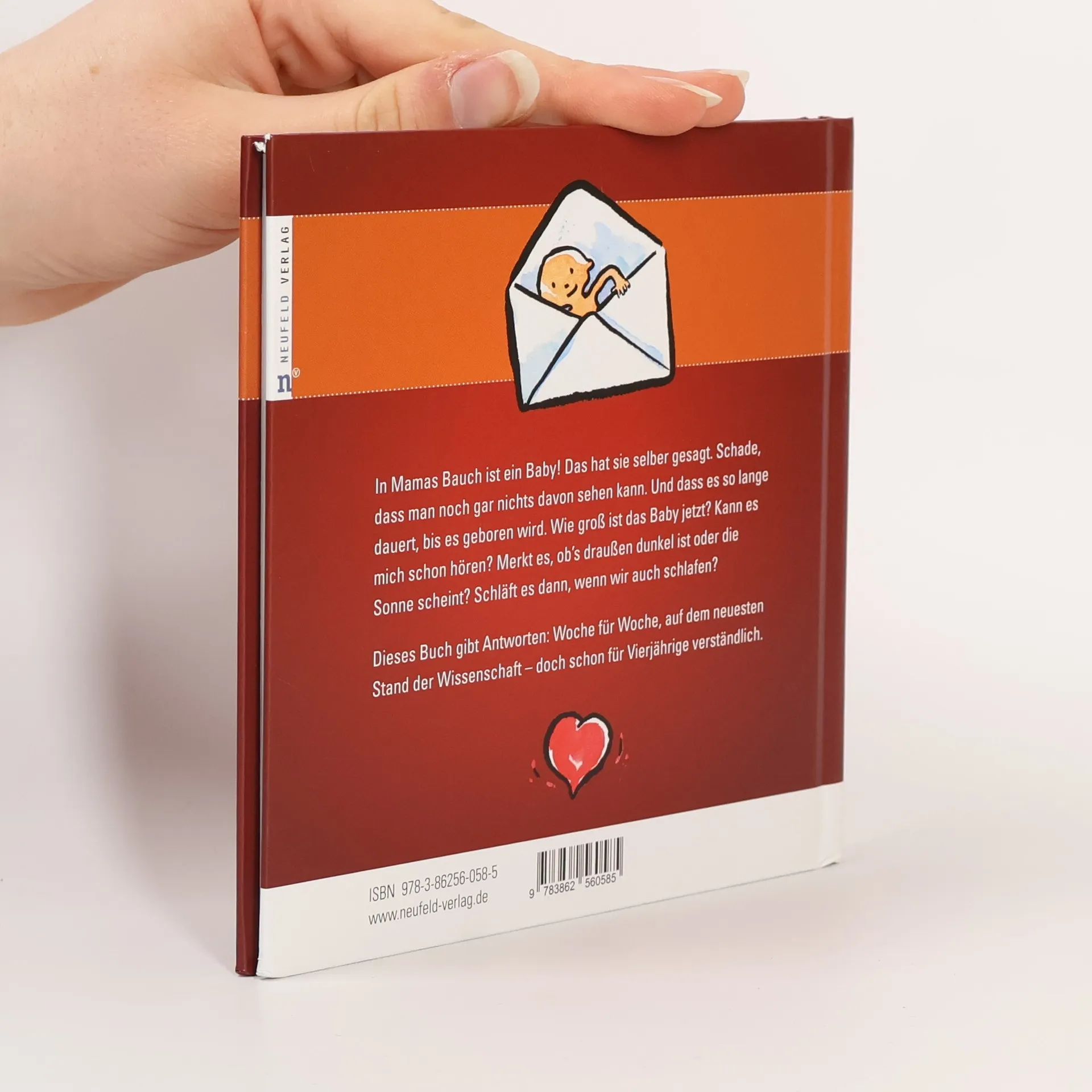 In Mamas Bauch ist ein Baby! Das hat sie selber gesagt. Schade, dass man noch gar nichts davon sehen kann. Und dass es so lange dauert, bis es geboren wird. Wie groß ist das Baby jetzt? Kann es mich schon hören? Wie merkt es, ob’s draußen dunkel ist oder die Sonne scheint? Schläft es dann, wenn wir auch schlafen? Dieses Buch gibt Antworten: Woche für Woche, auf dem neuesten Stand der Wissenschaft – doch schon für Vierjährige verständlich.
