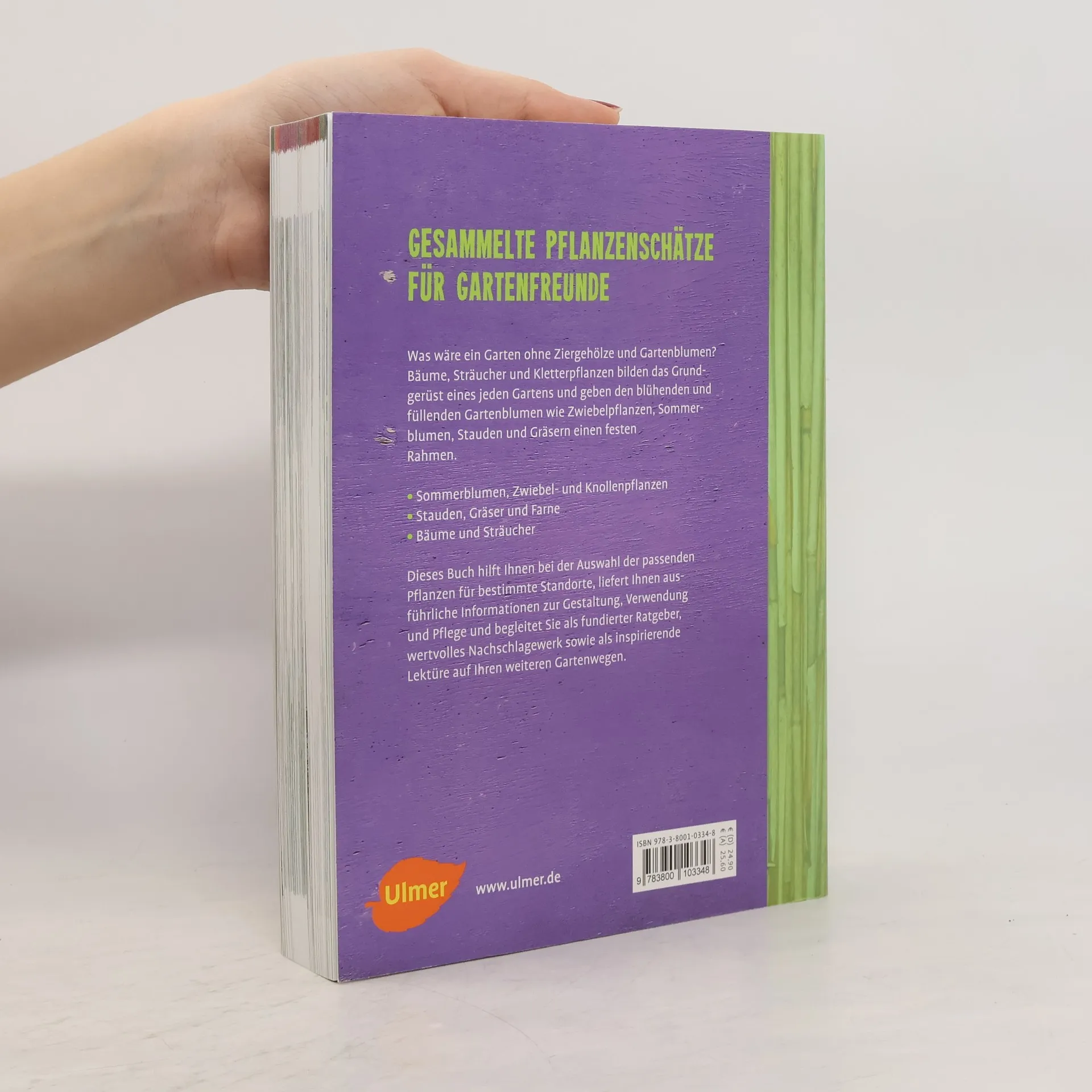 Was wäre ein Garten ohne Bäume, Sträucher und Gartenblumen? Gartengehölze bilden das Grundgerüst eines jeden Gartens und geben den blühenden Gartenblumen einen festen Rahmen. Beide Pflanzengruppen zusammen, richtig ausgewählt, gekonnt kombiniert und artgerecht verwendet, machen die Gartengestaltung perfekt. Dieses wertvolle Nachschlagewerk mit über 4500 Bäumen, Sträuchern, Rosen, Kletterpflanzen, Zwiebelpflanzen, Sommerblumen, Stauden und Gräsern hilft Ihnen, die richtige Auswahl zu treffen und die Übersicht zu behalten. Außerdem finden Sie grundlegende Hinweise zu Wuchs, Pflanzung, Pflege, Schnitt und Vermehrung sowie ausführliche Informationen zur Gestaltung und Verwendung der Pflanzen.