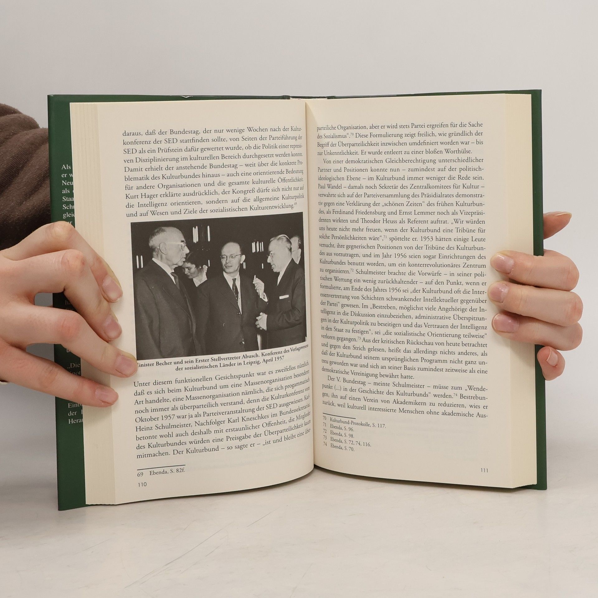 „Kinder singen deutsch, Mütter sprechen deutsch. Ich bin überglücklich (.) Inmitten all der Ruinen ist doch unser Leben, unsere Heimat“, äußerte Johannes R. Becher 1945 nach seiner Rückkehr aus dem Exil. Im Juni desselben Jahres war Becher Mitbegründer des Kulturbundes, der als „einzige geistige Erneuerungsbewegung“ in Deutschland galt. Sein sowjetisches Exil und die Erfahrungen der Stalin’schen Säuberungen prägten ihn stark. Der Kulturbund verstand sich zunächst als Sammelbecken demokratischer Kräfte, geriet jedoch zunehmend in die Konflikte des Kalten Krieges. Becher, ein Kommunist, konnte den Avancen der SED nicht widerstehen, was viele seiner Mitstreiter entfremdete. Trotz dieser Herausforderungen spielte er eine differenzierte Rolle als DDR-Kulturminister und Präsident des Kulturbundes. Hans Mayer bezeichnete ihn als „Glücksfall“, während Norman M. Naimark feststellte, dass Becher versuchte, den Bund von der Partei unabhängig zu halten und eine inklusive Identität zu schaffen. Vor 1948 war dies möglich, doch später wurde Becher als „Kaisergeburtstagsdichter“ kritisiert. Die Ereignisse des Herbstes 1956 führten zu seinem Zerbruch. Luise Rinser bemerkte 1951: „Du bist zwar ein berühmter Mann, aber Du hast keine Macht“, was Bechers tragische Situation treffend zusammenfasste.