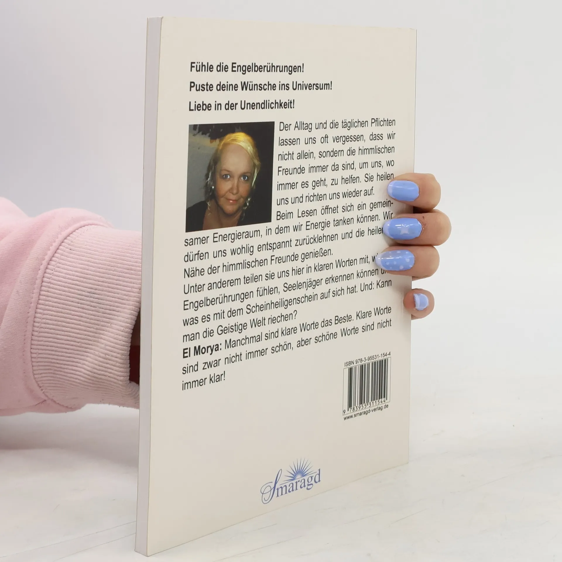 Fühle die Engelberührungen!Puste deine Wünsche ins Universum!Liebe in der Unendlichkeit!Ein Buch, das auf die aktuellen Geschehnisse eingeht, Ängste erlöst, Zuversicht gibt, heilt und berührt.Beim Lesen öffnet sich ein gemeinsamer Energieraum, in dem wir Energie tanken können. Wir dürfen uns wohlig entspannt zurücklehnen und die heilende Nähe der himmlischen Freunde genießen.Der Alltag und die täglichen Pflichten lassen uns oft vergessen, dass wir nicht allein, sondern die himmlischen Freunde immer da sind, um uns, wo immer es geht, zu helfen. Sie heilen uns und richten uns wieder auf.Wenn Erzengel ihre Aufmerksamkeit auf uns lenken, ist das immer ein Segen. Engel hören uns immer, sie reagieren auf den leisesten Gedanken, sie sind da.Unter anderem teilen sie uns hier in klaren Worten mit, wie wir Engelberührungen fühlen, Seelenjäger erkennen können und was es mit dem Scheinheiligenschein auf sich hat. Kann man die Geistige Welt riechen?El Manchmal sind klare Worte das Beste. Klare Worte sind zwar nicht immer schön, aber schöne Worte sind nicht immer klar!