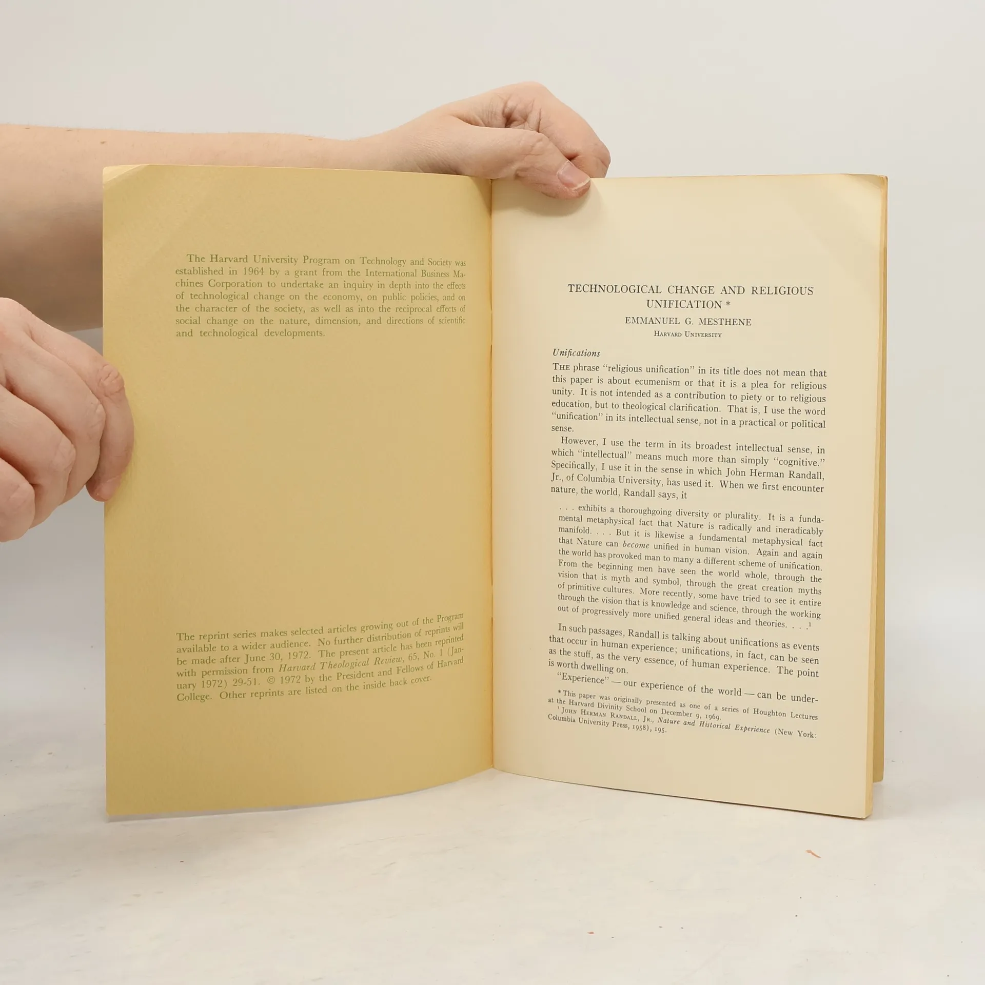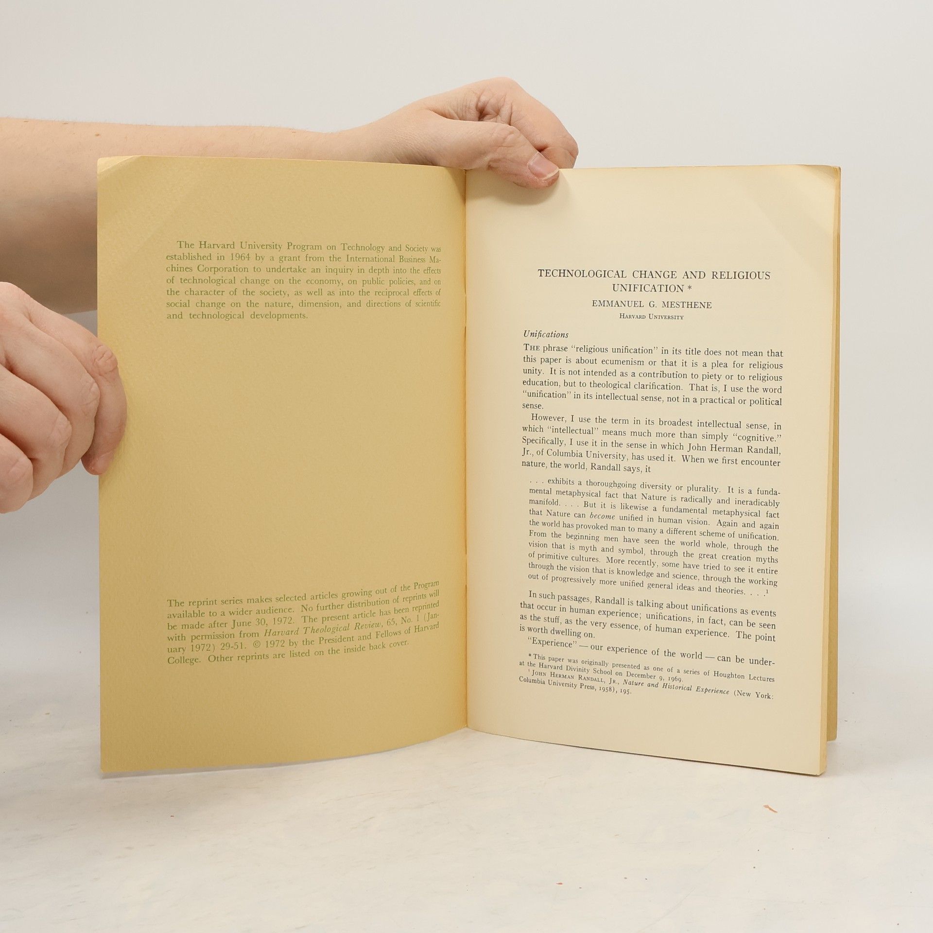Technological Change and Religious Unification, Emmanuel G. Mesthene
