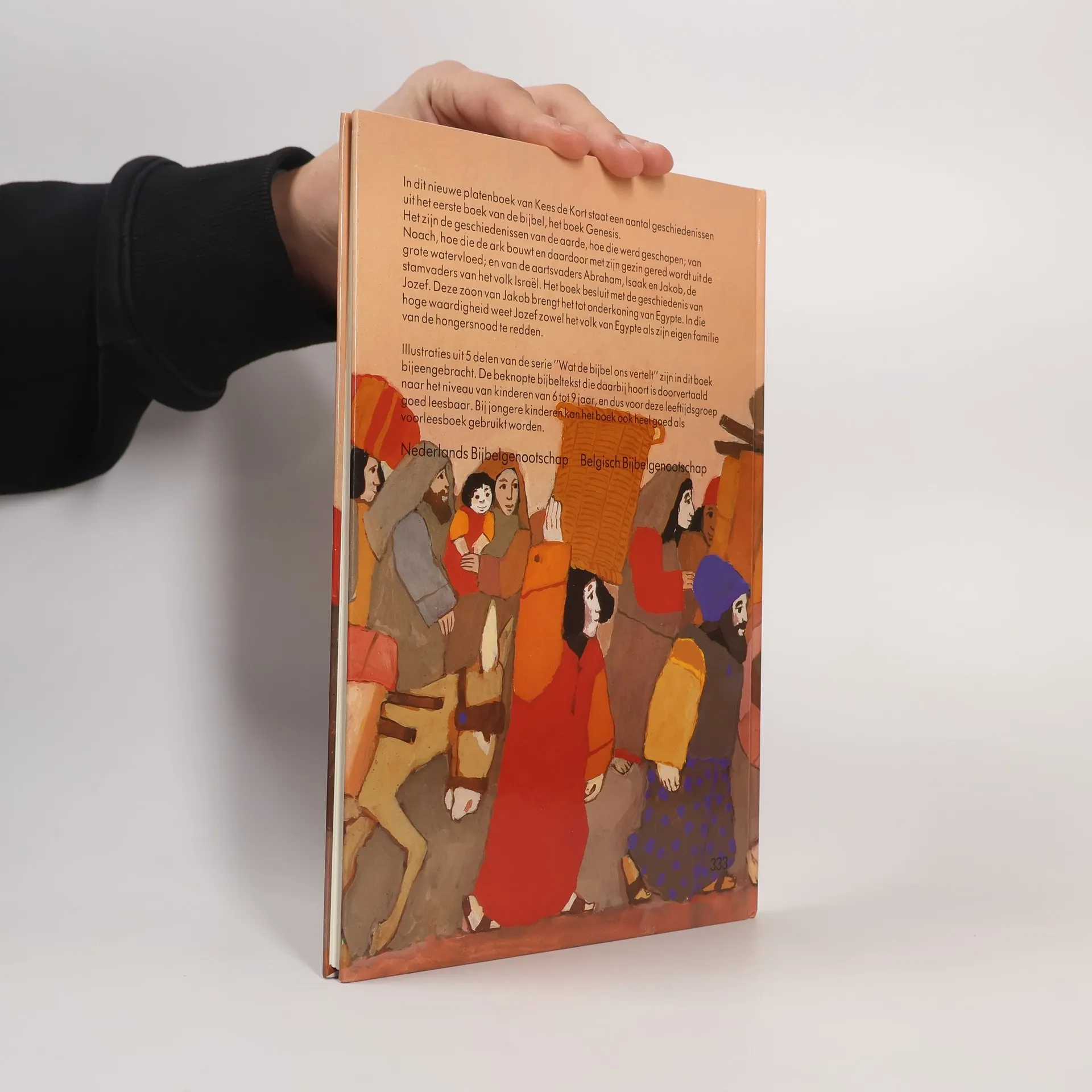 Beschrijving van de schepping, de ark van Noach, de reis van Abraham naar het beloofde land, het bedrog dat Jakob pleegde tegenover zijn vader en Jozef, die door zijn broers verkocht werd. Primitieve olieverfschilderingen in sprekende kleuren begeleiden een eenvoudige tekst. Vanaf ca. 5 jaar.