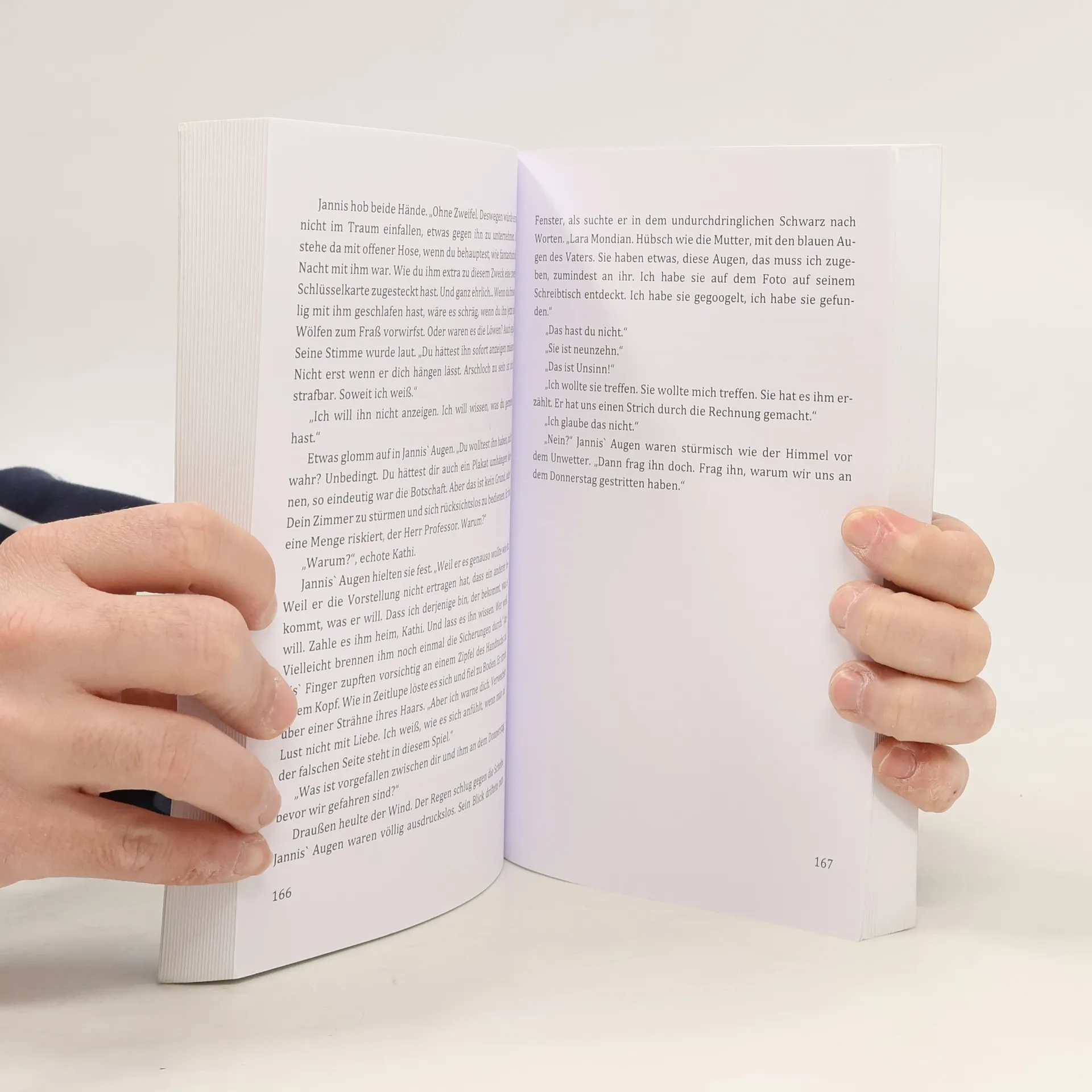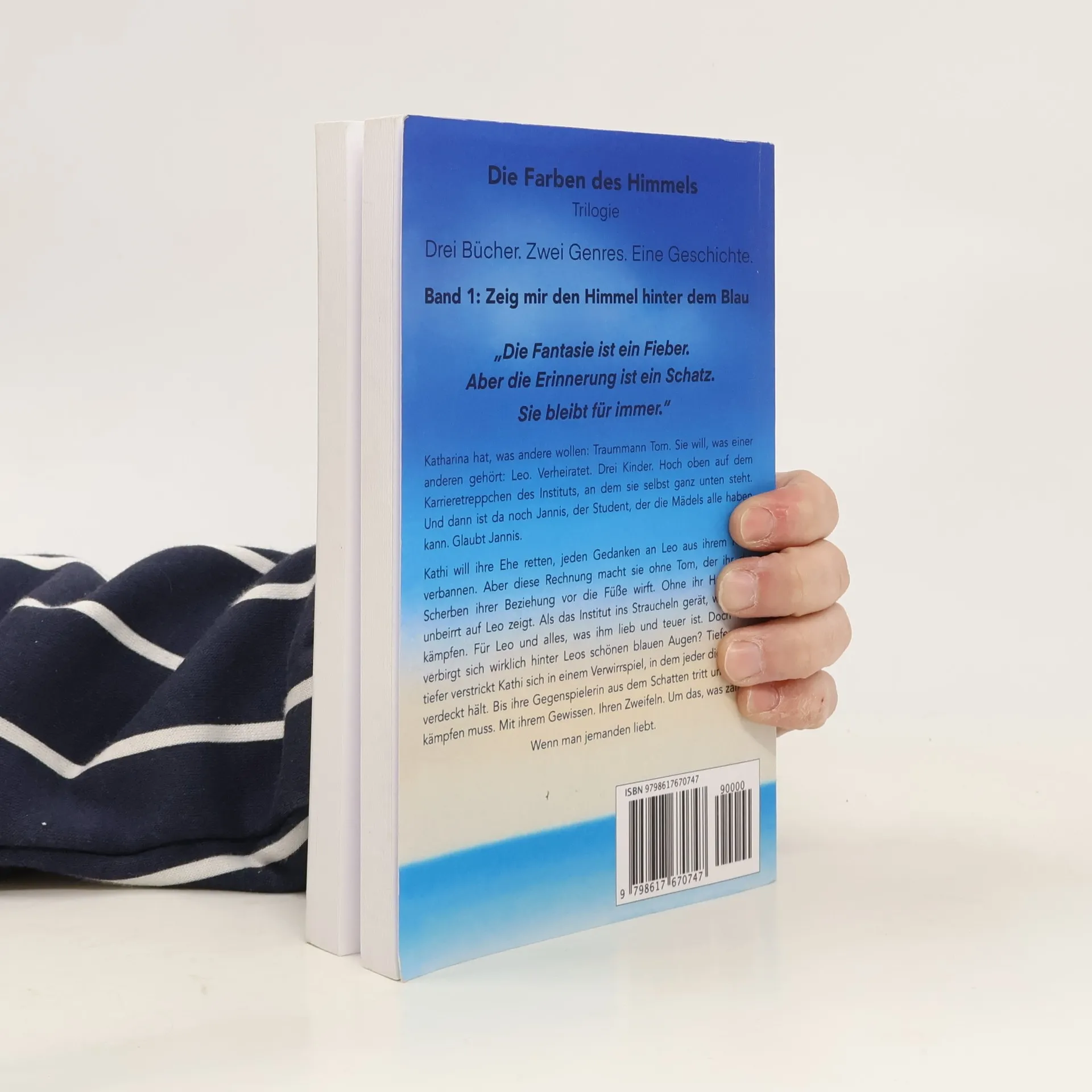 Wer bist du, Leo? Ein Ehemann, dem die Hände gebunden sind? Ein gnadenloser Aufreißer? Etwas Schlimmeres, etwas, für das man gar keine Worte finden will? Katharina hat, was andere Traummann Tom. Sie will, was einer anderen gehö Leo. Verheiratet. Drei Kinder. Hoch oben auf dem Karrieretreppchen des Instituts, an dem sie selbst ganz unten steht. Und dann ist da noch Jannis, der Student, der die Mädels alle haben kann. Glaubt Jannis. Kathi will ihre Ehe retten, jeden Gedanken an Leo aus ihrem Kopf verbannen. Aber diese Rechnung macht sie ohne Tom, der ihr die Scherben ihrer Beziehung vor die Füße wirft. Ohne ihr Herz, das unbeirrt auf Leo zeigt. Als das Institut ins Straucheln gerät, will Kathi kämpfen, für Leo und alles, was ihm lieb und teuer ist. Doch was verbirgt sich wirklich hinter seinen schönen blauen Augen? Tiefer und tiefer verstrickt Kathi sich in einem Verwirrspiel, in dem jeder die Karten verdeckt hält. Bis ihre Gegenspielerin aus den Schatten tritt und Kathi kämpfen muss. Mit ihrem Gewissen. Ihren Zweifeln. Um das, was zählt. Wenn man jemanden liebt. Mehr als nur die Geschichte einer Liebe. Die Beziehung zwischen Mann und Frau hat unendlich viele Gesichter... Zeig mir den Himmel hinter dem Blau ist der erste Band der Farben des Himmels Trilogie. Alle Bände sind in sich abgeschlossen und können unabhängig voneinander gelesen werden.