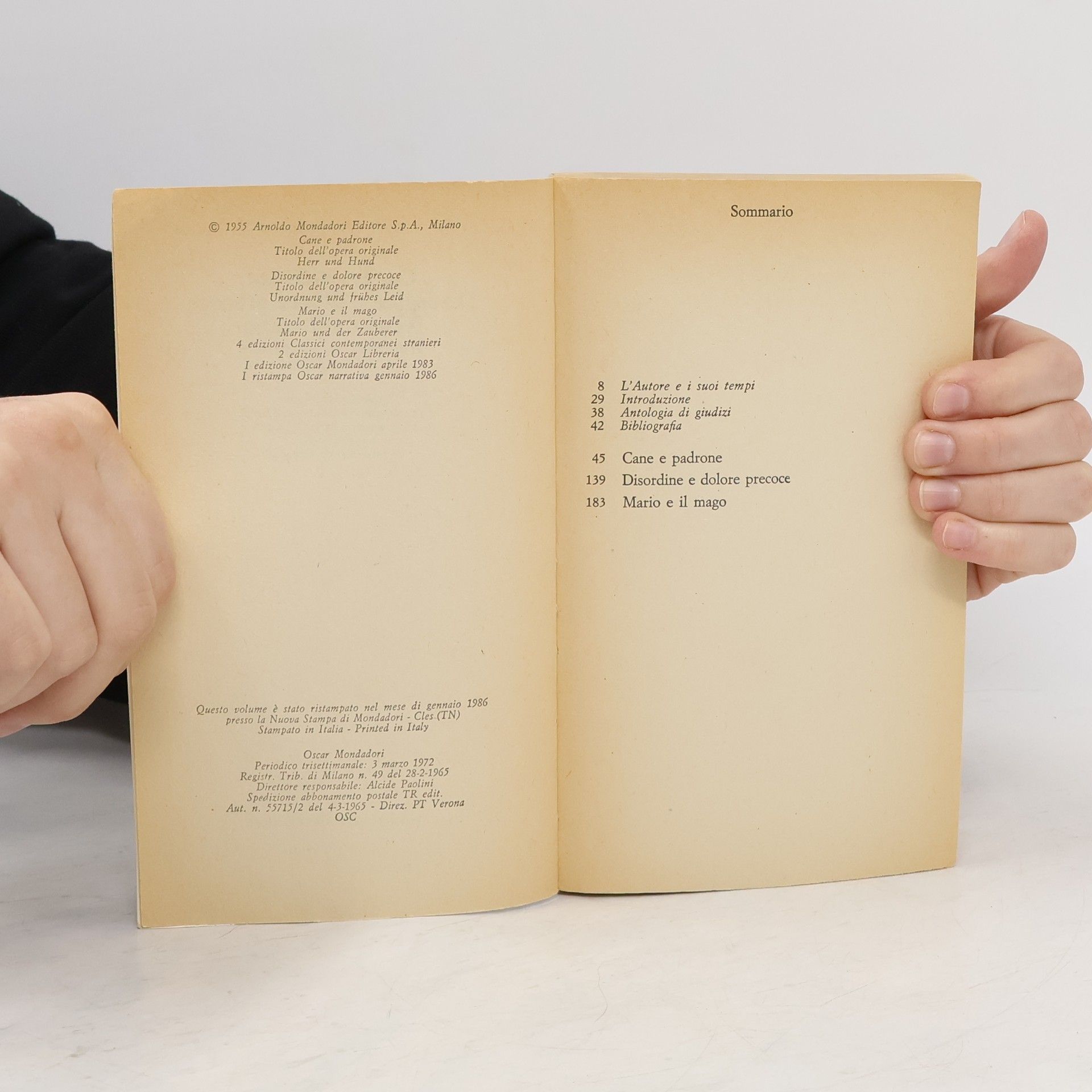 Cane e padrone. Disordine e dolore precoce. Mario e il mago, Thomas Mann