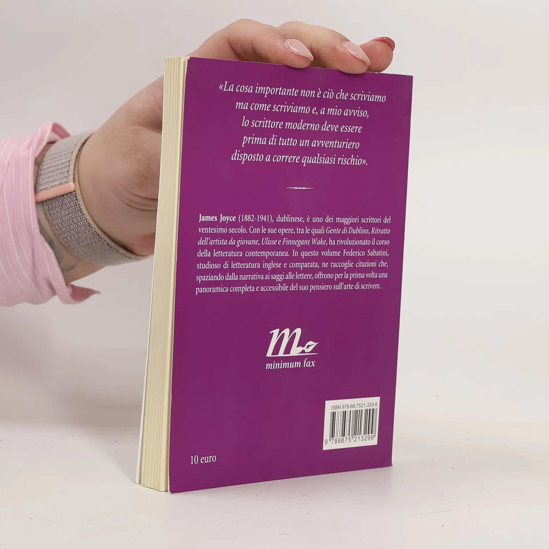 Nel 2011 ricorre il settantesimo anniversario della morte di James Joyce, ma per i lettori e gli scrittori di tutto il mondo l’autore dell’ Ulisse e di Gente di Dublino è più vivo che mai, come dimostra il successo del Bloomsday, la commemorazione che, da più di mezzo secolo a questa parte, il 16 giugno di ogni anno vede svolgersi eventi in suo onore in centinaia di città. Minimum fax ha scelto a sua volta di rendere omaggio a Joyce con una raccolta di citazioni, per la curatela di Federico Sabatini, che, spaziando dalla narrativa ai saggi alle lettere, offrono per la prima volta una panoramica completa e accessibile del suo pensiero sull’arte di scrivere: riflessioni sul processo creativo, sulle tecniche di narrazione, sul mercato editoriale, sul ruolo dello scrittore, nonché preziose osservazioni critiche sulla propria opera e quella altrui. Molto più agile da consultare rispetto a un manuale accademico, ma altrettanto ricco nei contenuti, Scrivere pericolosamente è un libro adatto al pubblico degli studenti e degli studiosi così come a quello dei semplici appassionati di letteratura e scrittura: ed è il perfetto complemento saggistico alle opere narrative di un grande classico del Novecento.