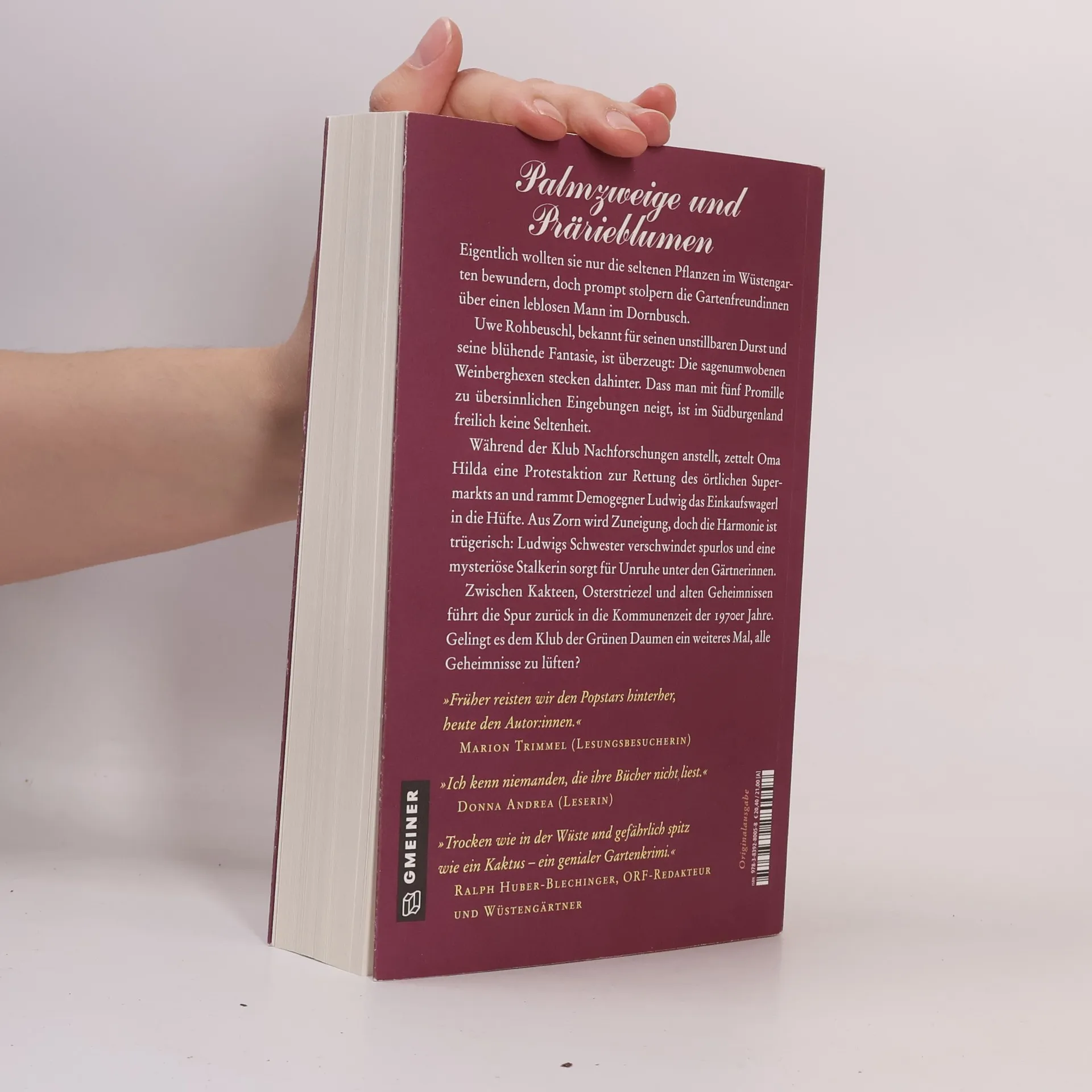 Eigentlich wollten sie nur die seltenen Pflanzen im Wüstengarten bewundern, doch prompt stolpern die Gartenfreundinnen über einen leblosen Mann im Dornbusch. Uwe Rohbeuschl, bekannt für seinen unstillbaren Durst und seine blühende Fantasie, ist überzeugt: Die sagenumwobenen Weinberghexen stecken dahinter. Dass man mit fünf Promille zu übersinnlichen Eingebungen neigt, ist im Südburgenland freilich keine Seltenheit. Während der Klub Nachforschungen anstellt, zettelt Oma Hilda eine Protestaktion zur Rettung des örtlichen Supermarkts an und rammt Demogegner Ludwig das Einkaufswagerl in die Hüfte. Aus Zorn wird Zuneigung, doch die Harmonie ist trügerisch: Ludwigs Schwester verschwindet spurlos und eine mysteriöse Stalkerin sorgt für Unruhe unter den Gärtnerinnen. Zwischen Kakteen, Osterstriezel und alten Geheimnissen führt die Spur zurück in die Kommunenzeit der 1970er Jahre. Gelingt es dem Klub der Grünen Daumen ein weiteres Mal, alle Geheimnisse zu lüften?