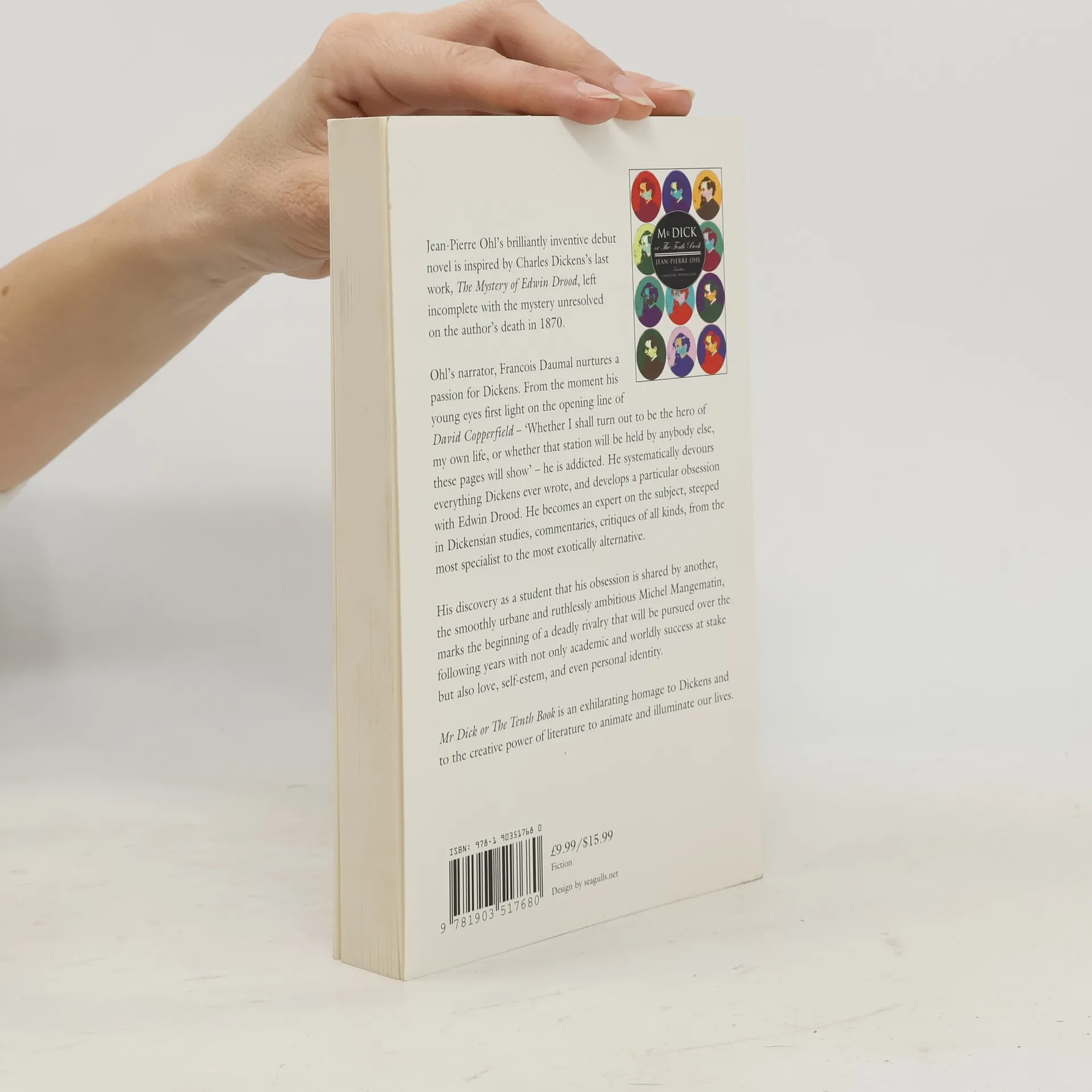 This novel blends Charles Dickens and characters from his novels into a quest to discover the ending of Dickens' last novel The Mystery of Edwin Drood which was left uncompleted at the author's death in 1870. Ohl's narrator, Francois Daumal nurtures a passion for Dickens. He systematically devours everything Dickens ever wrote, and develops a particular obsession with Edwin Drood. He becomes an expert on the subject, steeped in Dickensian studies, commentaries, critiques of all kinds, from the most specialist to the most exotically alternative. His discovery as a student that his obsession is shared by another, the smoothly urbane and ruthlessly ambitious Michel Mangematin, marks the beginning of a deadly rivalry that will be pursued over the following years with not only academic and worldly success at stake but also love, self-esteem, and even personal identity.