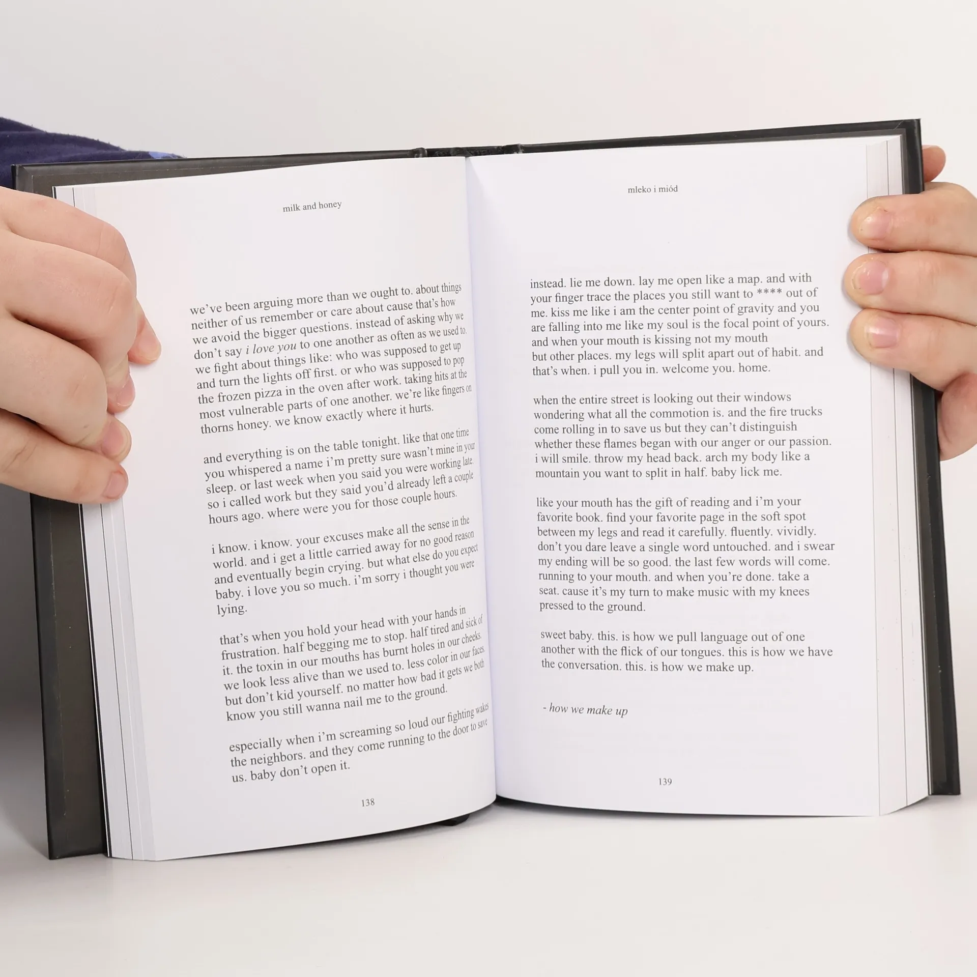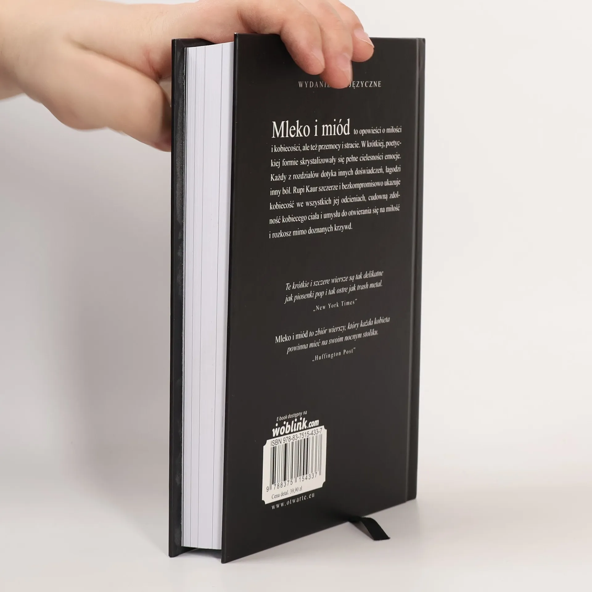 Mleko i miód. Milk and Honey to opowieści o miłości i kobiecości, ale też przemocy i stracie. W krótkiej, poetyckiej formie skrystalizowały się pełne cielesności emocje. Każdy z rozdziałów dotyka innych doświadczeń, łagodzi inny ból. Rupi Kaur szczerze i bezkompromisowo ukazuje kobiecość we wszystkich jej odcieniach, cudowną zdolność kobiecego ciała i umysłu do otwierania się na miłość i rozkosz mimo doznanych krzywd. Wydanie dwujęzyczne.