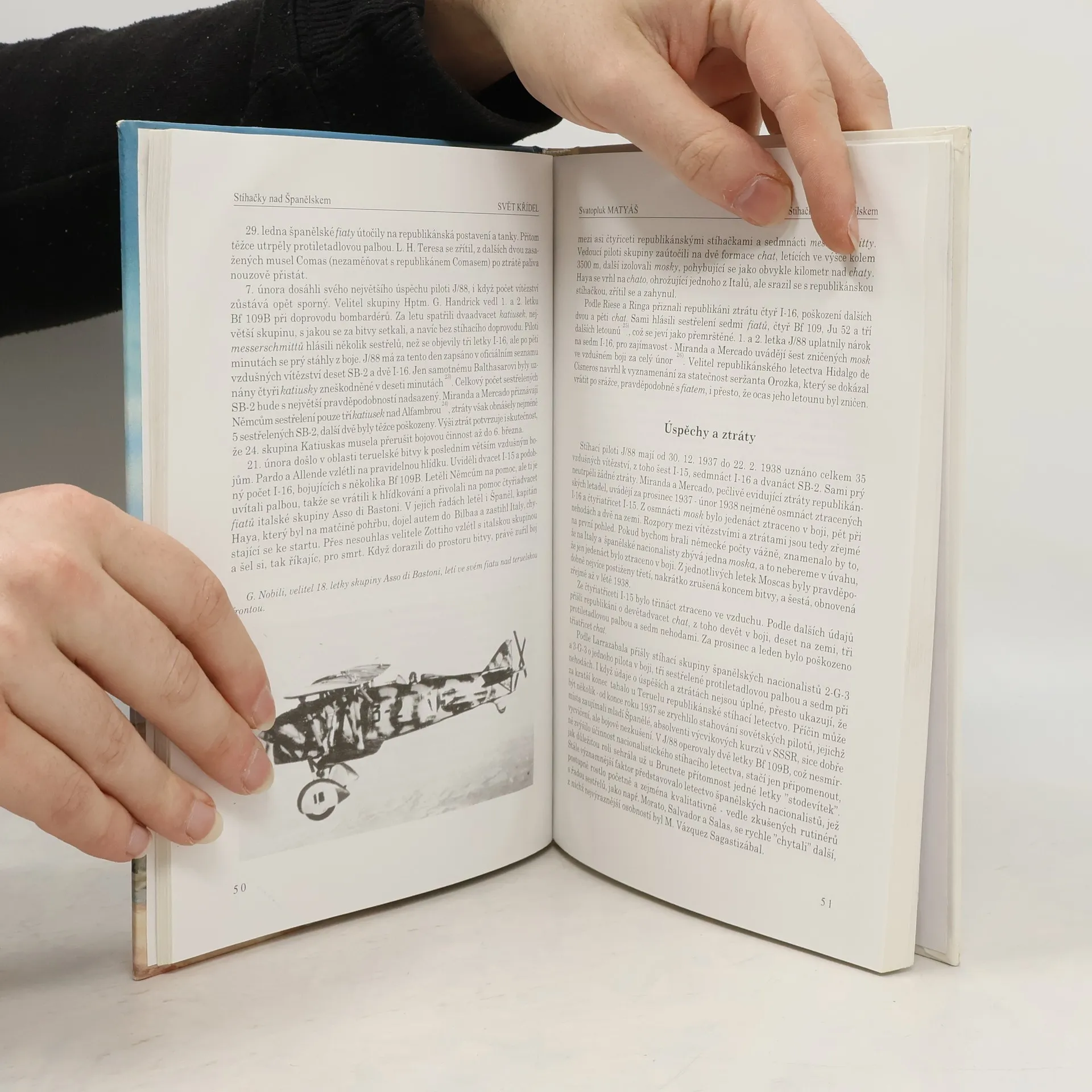 V této knize autor seznamuje čtenáře s působením a významem stíhacího letectva ve španělské válce. Páter knihy tvoří podrobné vylíčení vzdušných bojů ve většině klíčových bitev války. Současně s tím se letecký příznivec dozví, jak v nelítostné konfrontaci obstály jednotlivé typy letounu obou válčících stran. Vzdušné boje nad Španělskem potvrdily nezadržitelný nástup stíhacích dolnoplošníků, hlavně v podobě konfrontace konfliktu však hrály důstojnou roli také výrazně pomalejší dvojplošníky. Na republikánské straně se do paměti zapsal Polikarpov I-15, u nacionalistu pak snad nejklasičtější dvojplošník třicátých let - Fiat CR-32, na jehož konto pravděpodobně připadá největší podíl na vzdušných vítězstvích nacionalistického letectva včetne italské Aviazione Legionaria a německého Legionu Condor. Protože bojová účinnost každého typu stíhačky závisí do značné míry na kvalitách pilotu, zařadil autor do knihy také kapitolu zachycující kariéry do-mácích i zahraničních es nacionalistického i republikánského letectva. K doplnění celkového obrazu slouží informace o organizaci a bojích stíhaček s bombardéry. Nechybí ani dostupné údaje o československé účasti ve válce, konkrétně o Janu Ferákovi a stíhacím letounu Letov Š-231.