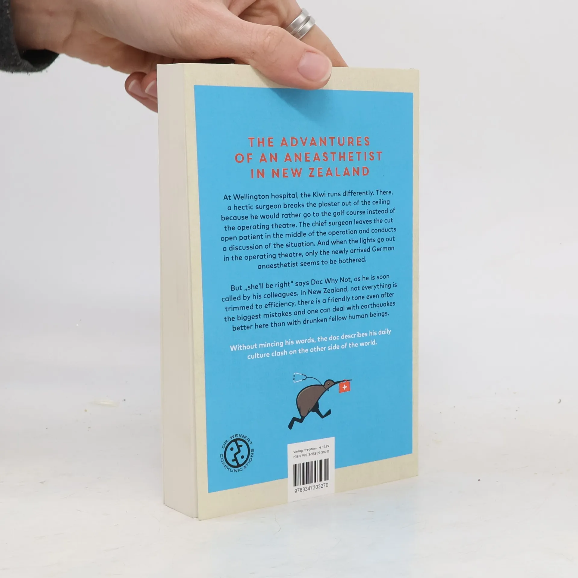 At Wellington hospital, the Kiwi runs differently. There, a hectic surgeon breaks the plaster out of the ceiling because he would rather go to the golf course instead of the operating theatre. The chief surgeon leaves the cut open patient in the middle of the operation and conducts a discussion of the situation. And when the lights go out in the operating theatre, only the newly arrived German anaesthetist seems to be bothered. But "she'll be right" says Doc Why Not, as he is soon called by his colleagues. In New Zealand, not everything is trimmed to efficiency, there is a friendly tone even after the biggest mistakes, and one can deal with earthquakes better here than with drunken fellow human beings. Without mincing his words, the doc describes his daily culture clash on the other side of the world.