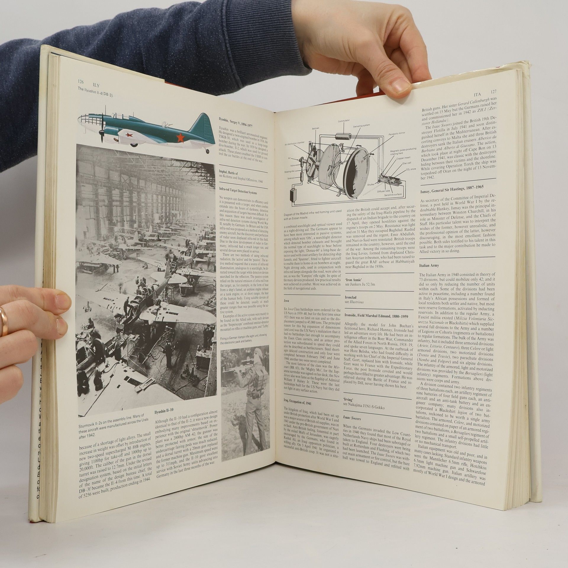 Militærhistorie, krigshistorie, verdesnhistorie, 2. Verdenskrig, 1939-1945 - bredt generelt engelsk opslagsværk, en encyklopædi, fra 1977, over 2. Verdenskrig. Beskriver kortfattet, men informativt krigens begivenheder, fronter, slag, kampe, felttog, generaler, politikere, hærførere, feltherrer, våben, hærstyrker, operationer, begreber, etc. Albabetisk ordnet, mange illustrationer, tekniske tegninger og definitioner, forklaringer, oplysninger og informationer, oversigter, m.m.
