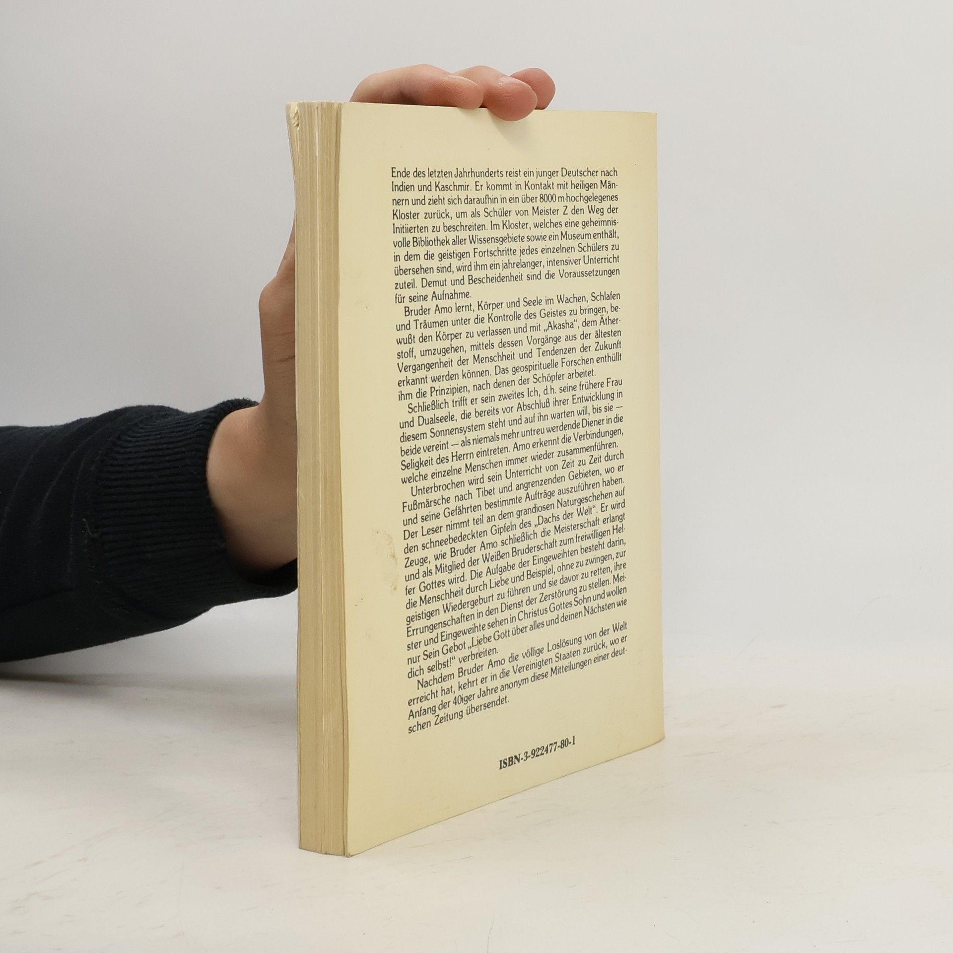 Ende des letzten Jahrhunderts reist ein junger Deutscher nach Indien und Kaschmir. Er kommt in Kontakt mit heiligen Männern und zieht sich daraufhin in ein über 8000 m hochgelegenes Kloster zurück, um als Schüler von Meister Z den Weg der Initiierten zu beschreiten. Im Kloster, welches eine geheimnisvolle Bibliothek aller Wissensgebiete sowie ein Museum enthält, in dem die geistigen Fortschritte jedes einzelnen Schülers zu übersehen sind, wird ihm ein jahrelanger, intensiver Unterricht zuteil. Demut und Bescheidenheit sind die Voraussetzungen für seine Aufnahme. Bruder Amo lernt, Körper und Seele im Wachen, Schlafen und Träumen unter die Kontrolle des Geistes zu bringen, bewußt den Körper zu verlassen und mit „Akasha“, dem Ätherstoff, umzugehen, mittels dessen Vorgänge aus der ältesten Vergangenheit der Menschheit und Tendenzen der Zukunft erkannt werden können. Das geospirituelle Forschen enthüllt ihm die Prinzipien, nach denen der Schöpfer arbeitet.