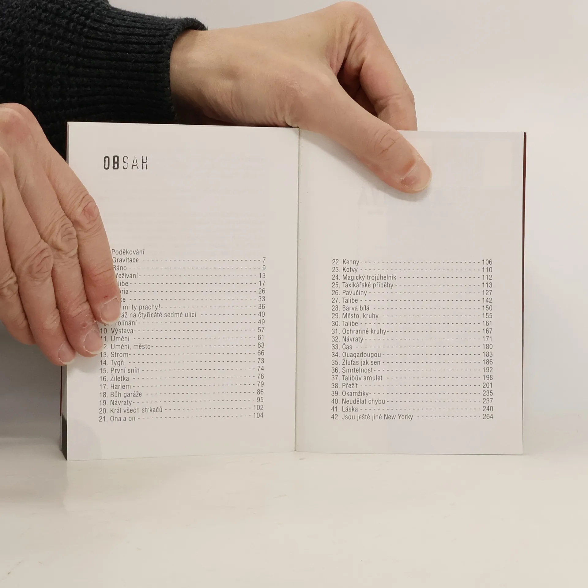 Koláž dojmů, drobných zážitků i dramatických příhod vytváří pozoruhodný obraz New Yorku a života v něm, jak jej vidí česká emigrantka. Autorka, taxikářka bez permanentního pracovního povolení, denně projíždí luxusní části města i brlohy Haarlemu, důvěrně zná mapu města i bizarní existence na jeho dně, New York miluje i nenávidí. Neobyčejně poetickým jazykem na jedné straně a drsným stylem ghetta na straně druhé, vypráví autorka o světě, který poznala na vlastní kůži a vytváří tak mimořádně sugestivní, v české literatuře 90. let ojedinělou knihu.