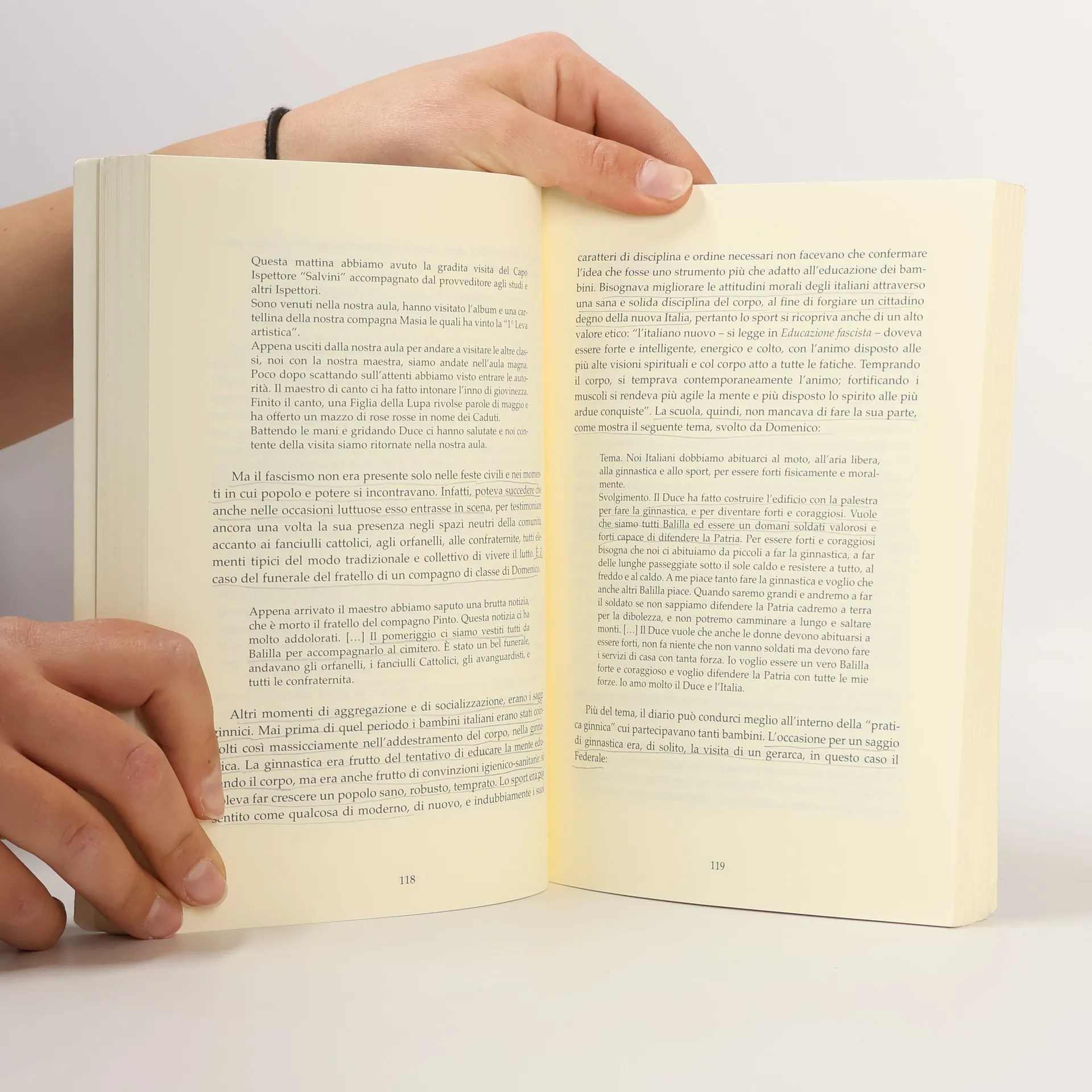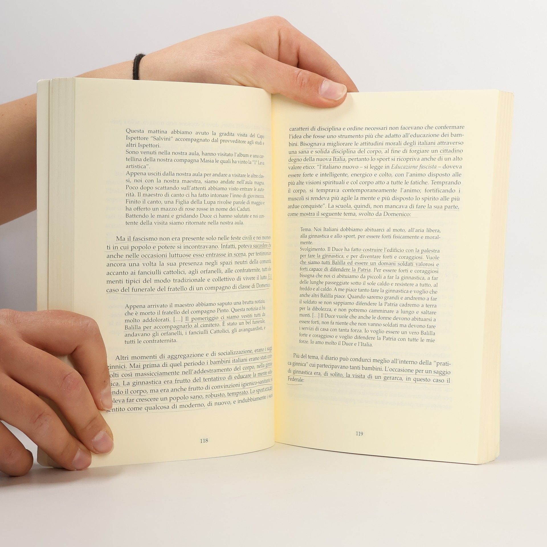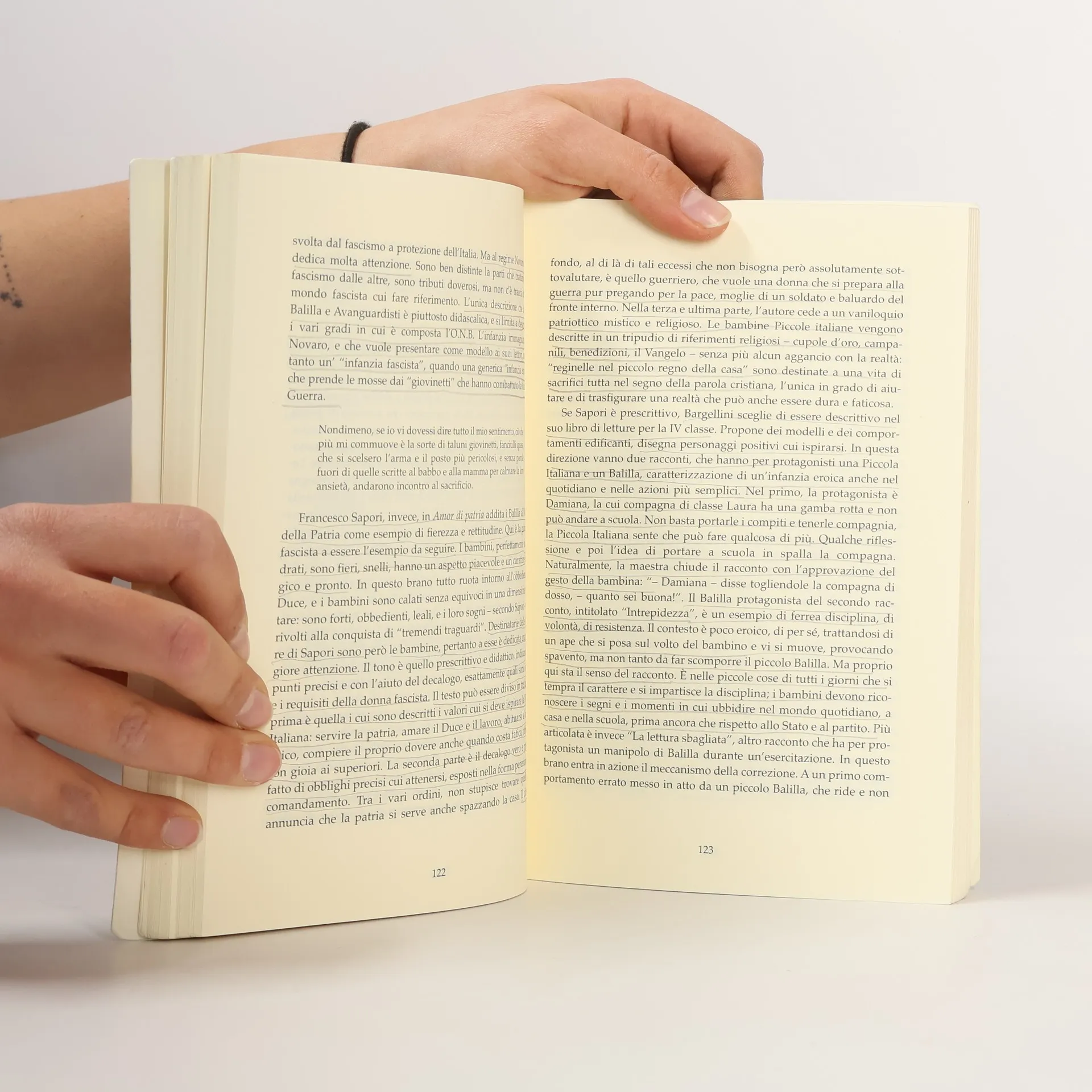 Study of school textbooks during Fascism and the first years of the Republic and the dangers of political monopoly of knowledge and, after 1945, of apolitical refusal of recent history in favour of Catholic conservatism.