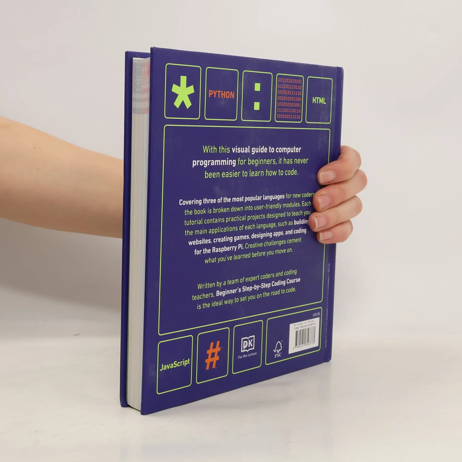 Learning to code has never been easier than with this innovative visual guide to computer programming for beginners.Coding skills are in high demand and the need for programmers is still growing. However, taking the first steps in learning more about this complex subject may seem daunting and many of us feel left behind by the coding revolution. By using a graphic method to break code into small chunks, this book brings essential skills within reach.Terms such as algorithm, variable, string, function, and loop are all explained. The book also looks at the main ?coding languages that are out there, outlining the main applications of each language, so you can choose the right language for you.Individual chapters explore different languages, with practical programming projects to show you how programming works. You'll learn to think like a programmer by breaking a problem down into parts, before turning those parts into lines of code. Short, easy-to-follow steps then show you, piece by piece, how to build a complete program. There are challenges for you to tackle to build your confidence before moving on.Written by a team of expert coders and coding teachers, the Beginner's Step-by-Step Coding Course is the ideal way to get to grips with coding.