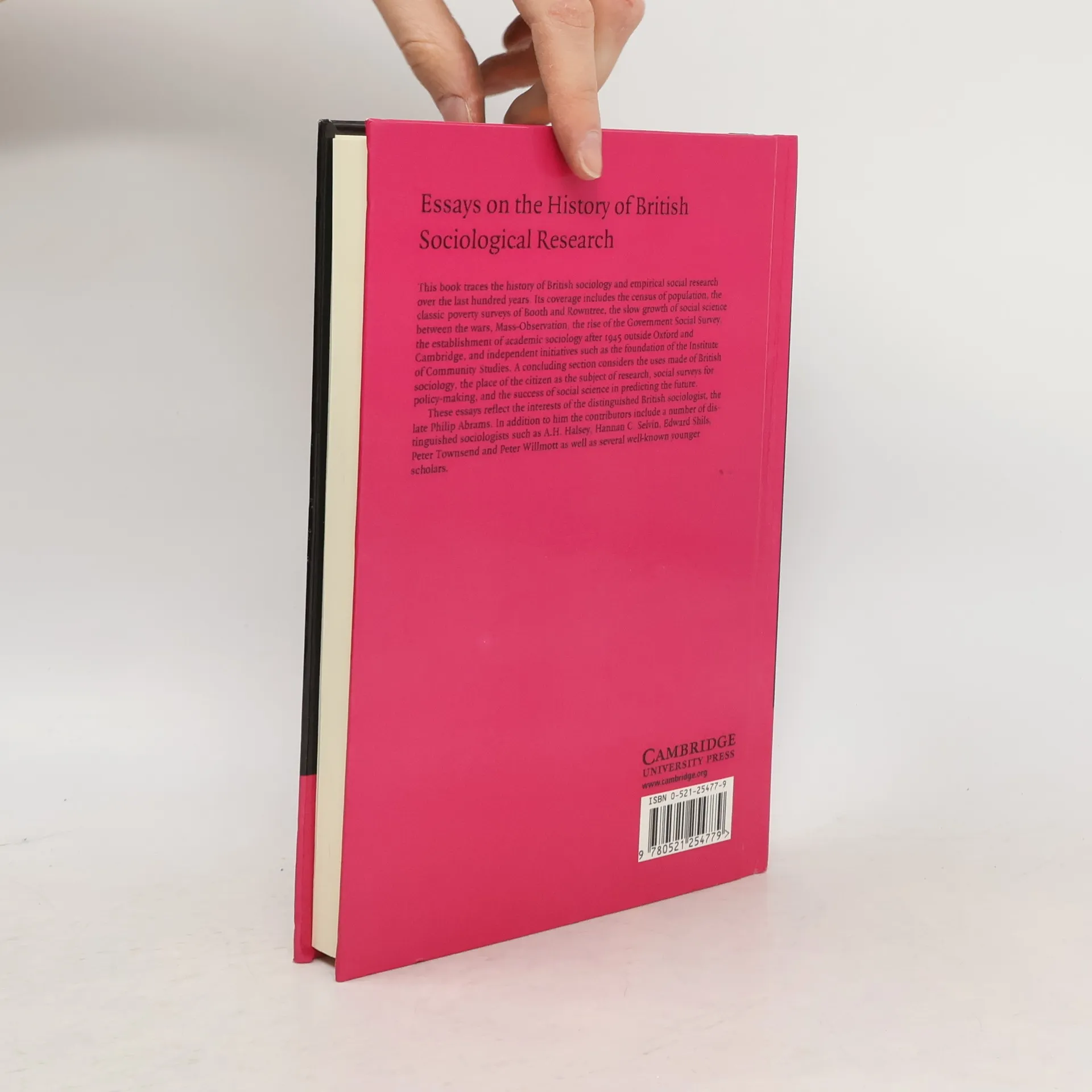 This book traces the history of British sociology and empirical social research over the last hundred years. Its coverage includes the census of population, the classic poverty surveys of Booth and Rowntree, the slow growth of social science between the wars, mass-observation, the rise of the Government Social Survey, the establishment of academic sociology after 1945 outside Oxford and Cambridge, and independent initiatives such as the foundation of the Institute of Community Studies. A concluding section considers the uses made of British sociology, the place of the citizen as the subject of research, social surveys for policy-making, and the success of social science in predicting the future. These essays reflect the interests of the distinguished British sociologist, the late Philip Abrams. In addition to him the contributors include a number of distinguished sociologists such as A. H. Halsey, Hannan C. Selvin, Edward Shils, Peter Townsend and Peter Willmott, as well as several well-known younger scholars.