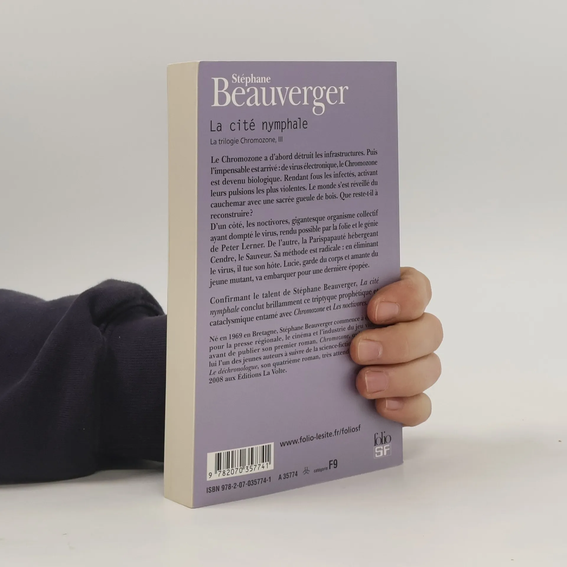 Le Chromozone a d'abord détruit les infrastructures. Puis l'impensable est arrivé : de virus électronique, le Chromozone est devenu biologique. Rendant fous les infectés, activant leurs pulsions les plus violentes. Le monde s'est réveillé du cauchemar avec une sacrée gueule de bois. Ques reste-t-il à reconstruire?D'un côté, les noctivores, gigantesque organisme collectif ayant dompté le virus, rendu possible par la folie et le génie de Peter Lerner. De l'autre, la Parispapauté hébergeant Cendre, le Sauveur. Sa méthode est radicale : en éliminant le virus, il tue son hôte. Lucie, gardu du corps et amante du jeune mutant, va embarquer pour une dernière épopée.Confirmant le talent de Stéphane Beauverger, La cité nymphale conclut brillamment ce triptyque prophétique et cataclysmique entamé avec Chromozone et Les noctivores.