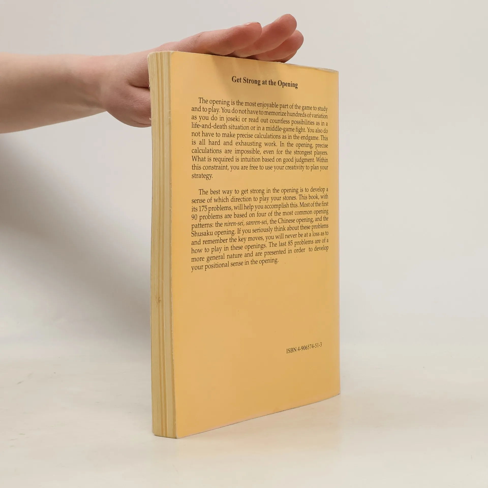 175 problems in the opening (fuseki) ranging in difficulty from easy to difficult. This book is an ideal introduction to the field of fuseki and should be studied by every beginning player. The problems begin with an analysis of the Chinese, niren-sei, sanren-sei, Shusaku, and tatsuki (diagonal) fusekis as well as other important opening strategies. The remainder of the problems are designed to hammer home to the reader the basic principles of the fuseki.