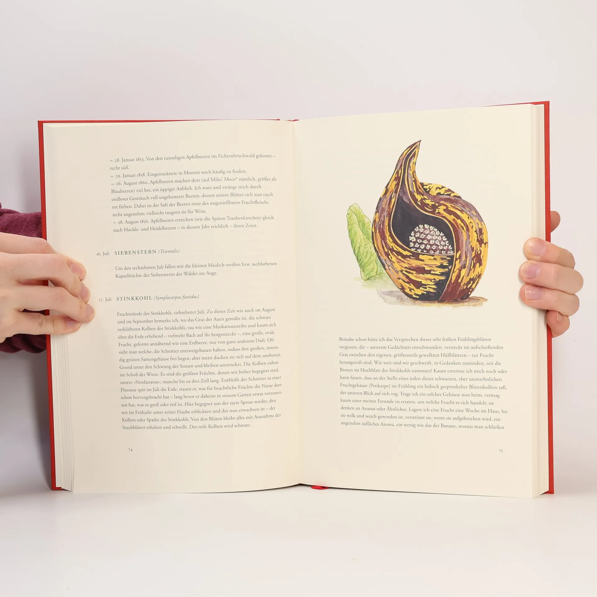 Erhellende Erkenntnisse über Natur und Leben vom Vordenker der ökologischen BewegungNie war er aktueller als heute – Henry David Thoreau, Kämpfer für Bürgerrechte und Vordenker der ökologischen Bewegung. Zum 200. Geburtstag des Autors am 12. Juli 2017 präsentiert der Manesse Verlag eine kleine Sensation: die deutsche Erstausgabe seiner Aufzeichnungen über „Wilde Früchte”. Liebevoll und detailgenau begleitet Thoreau Erwachen, Wachsen und Reifen der heimischen Natur. Ausgangspunkt seiner literarischen Streifzüge durch die Pflanzenwelt war Concord, Massachusetts, der Schauplatz seines berühmten Werkes „Walden”. Thoreaus Einträge beschreiben 182 Arten und Unterarten, von den Nussfrüchten der Ulmen Anfang Mai bis zum Wacholder im darauffolgenden März. Für deren genaues Aussehen, ihren Standort und Reifungsprozess interessierte er sich ebenso wie für frühe naturgeschichtliche Aufzeichnungen und das Wissen der amerikanischen Ureinwohner. In prachtvoller Ausstattung und illustriert mit 50 eigens angefertigten farbigen Zeichnungen, lässt sich seine fein strukturierte Prosa im Jubiläumsjahr ganz neu entdecken. Den Geschenkband ergänzen ein botanisches Glossar, ein umfassender Anmerkungsapparat und eine Landkarte von Concord.