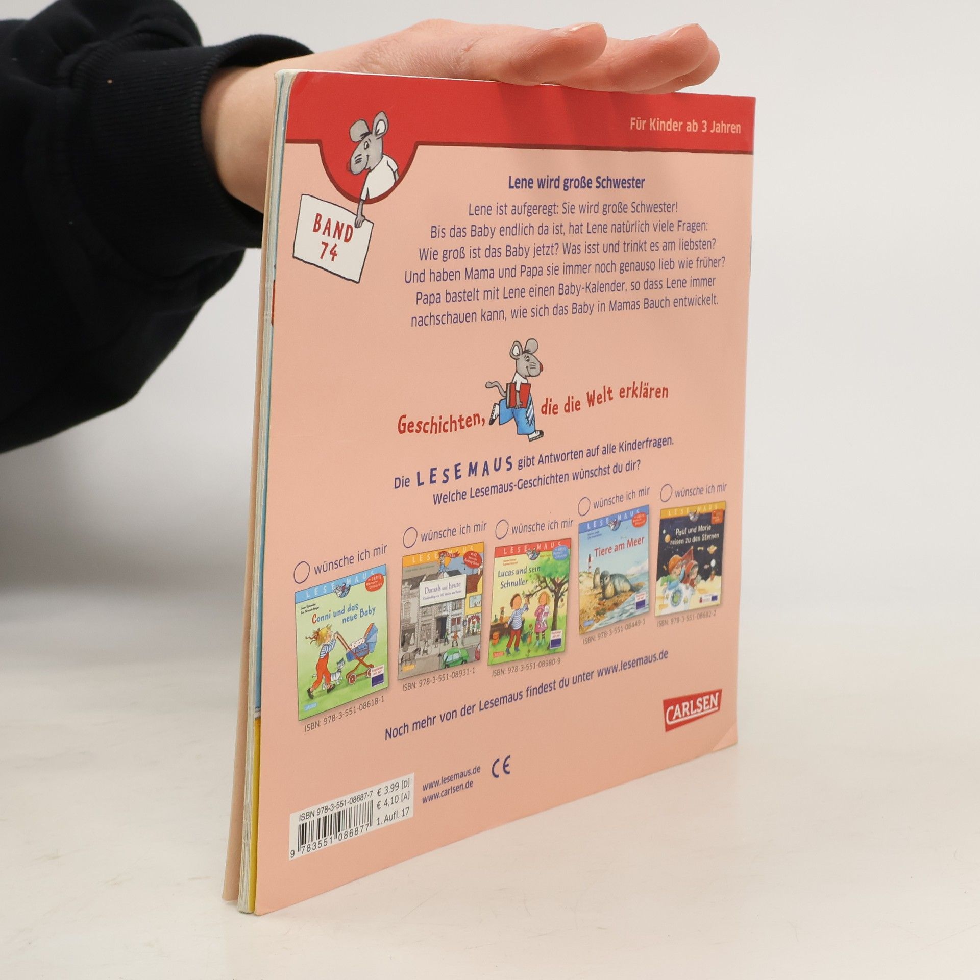 Lene wird große Schwester! Eine spannende Zeit beginnt. Und um die Entwicklung des Babys richtig zu verstehen, bastelt sie mit Papa einen Babykalender. Diese Geschichte könnt ihr euch in der kostenlosen App „Der kleine Vorleser“ auch vorlesen lassen! So geht’s: Öffnet den Appstore eures Gerätes und gebt im Suchfeld "Der kleine Vorleser" ein. Installiert die App und öffnet sie. Tippt auf euer Buch und scannt die Vorderseite des Buches mit der Kamera eures Gerätes ein. Nun startet der Vorlesespaß! Mit dieser App könnt ihr euch auch viele andere eurer Bücher vorlesen lassen. Viel Spaß beim Zuhören!