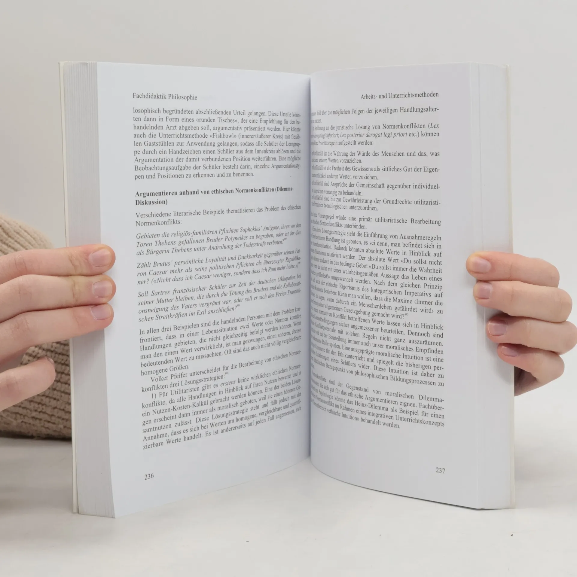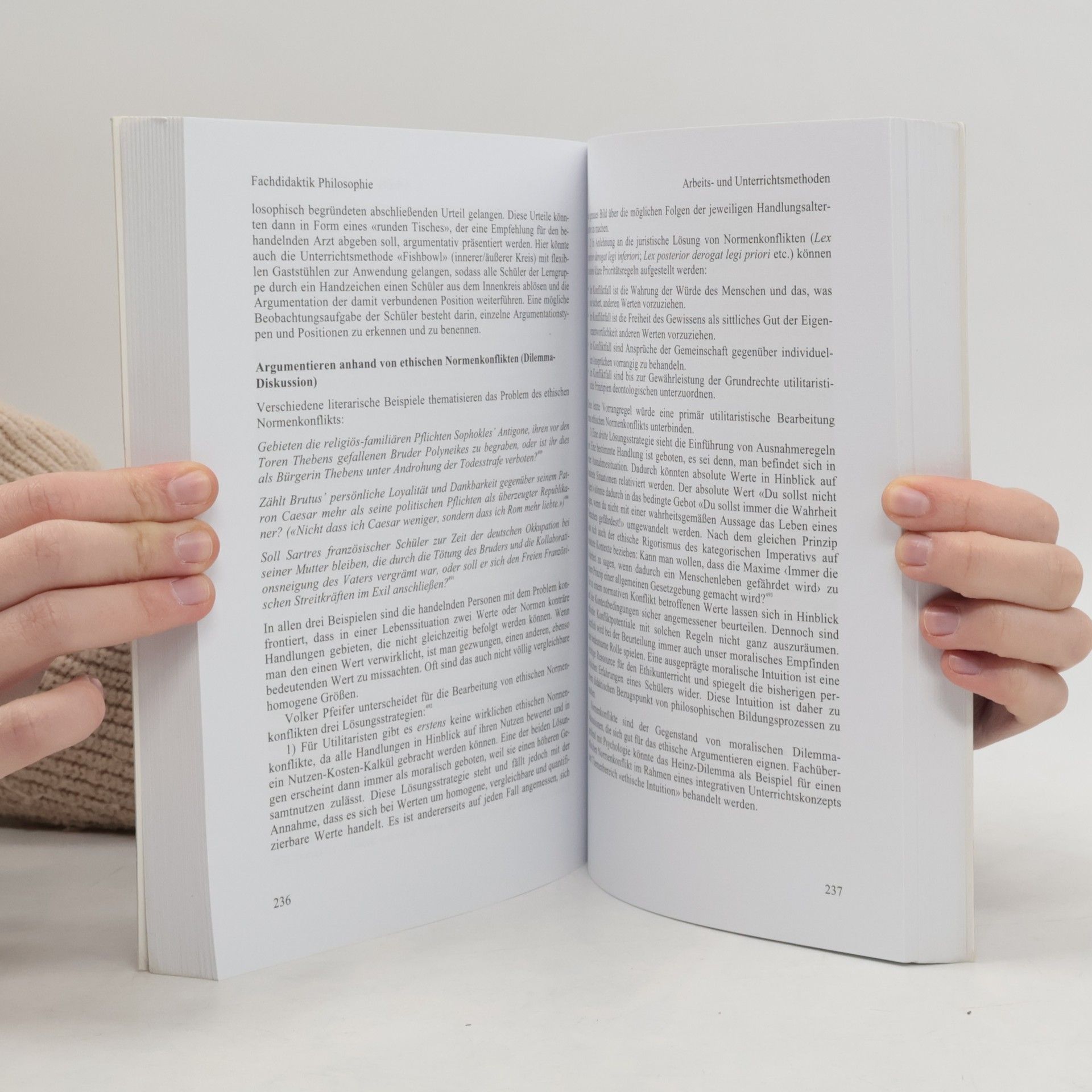 Wie kann das Philosophieren als Grundkompetenz des Fachs problemorientiert vermittelt und wie können philosophische Bildungsprozesse in der gymnasialen Oberstufe angeregt werden? Paul Georg Geiß rekonstruiert anhand der Theorieansätze von Rehfus, Martens und Rohbeck ein bildungstheoretisches Kompetenzmodell für den Philosophieunterricht, das auch den nicht direkt sichtbaren und prüfbaren Bereich der Kompetenzvermittlung erschließt. Er zeigt praxisnah anhand von Materialien, wie Fachmethoden (philosophische Textarbeit, Gedankenexperiment, Begriffsanalyse, sokratisches Gespräch, philosophisches Argumentieren, Essayschreiben) prozessual als Arbeitsund Unterrichtsmethoden vermittelt und wie kompetenzorientierte Prüfungsaufgaben gestellt werden können. Eine Unterrichtsreihe zum Themenbereich «Glück» konkretisiert beispielhaft die Anforderungen an die Unterrichtsplanung und dient auch als didaktisches Modell für die Philosophielehrerbildung (Referendariat, Unterrichtspraktikum, Maturitätsdiplom).