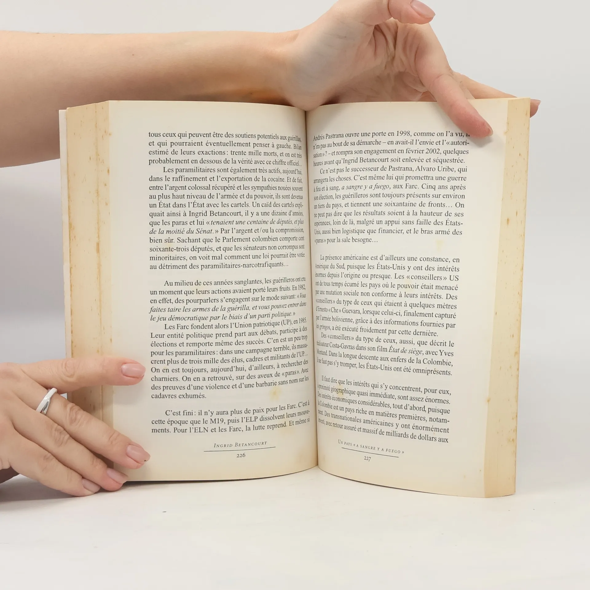 Voici toute l'histoire véritablement extraordinaire de cette femme opiniâtre et courageuse qui force le respect. Même un très bon romancier aurait eu beaucoup de mal à imaginer une aventure aussi dense et improbable, des personnages aussi forts et des situations aussi exceptionnelles. Bientôt six ans passés comme otage des Frac, un accord de libération qui s'éternise, d'innombrables manoeuvres entre enjeux politiques et géostratégiques majeurs, entre cartels de la drogue et interventions des services secrets de plusieurs États, entre coup fourrés, revirements de situation et diplomatie secrète, avec en filigrane une nation colombienne gangrenée au plus haut niveau par la corruption. Ce que décrit l'auteur dans son récit est dramatiquement authentique, établi, vérifié et vérifiable, dans un saga effectivement tout à fait incroyable.Se dégage le portrait d'une Ingrid Betancourt finalement méconnue sur bien des plans, avec un parcours totalement hors norme, de son départ pour la Colombie, c'est-à-dire son engagement total et héroïque en politique, à son statut d'otage majeur des guérilleros, en passant par ses études à Science-Po à Paris ; ses actions spectaculaires - jusqu'à une grève de la faim qui la mènera au coma - , et ses discours d'une vérité sidérante contre les corrompus, les yeux dans les yeux, à la Chambre des députés comme au Sénat. De nombreuses anecdotes, toutes plus ébouriffantes les unes que les autres, jalonnent son âpre parcours colombien, mais aussi sa vie.Habitée d'une passion politique totale, quitte à y perdre famille et confort, mais aussi poussée par des valeurs éthiques qui feront de la lutte contre la corruption son cheval de bataille, Ingrid Betancourt n'a véritablement peur de rien dans un pays où la vie ne vaut pas un peso. Du reste, la sienne ne tient désormais qu'à un fil ténu... Puisse ce livre la soutenir dans cette épreuve interminable, grâce à la pensée amicale de chaque lecteur. Sa libération, et celle de tous les otages, dépend sans nul doute d'une mobilisation mondiale : puisse également cet ouvrage y contribuer à la suite de celui de ses enfants en réponse à son émouvante lettre.