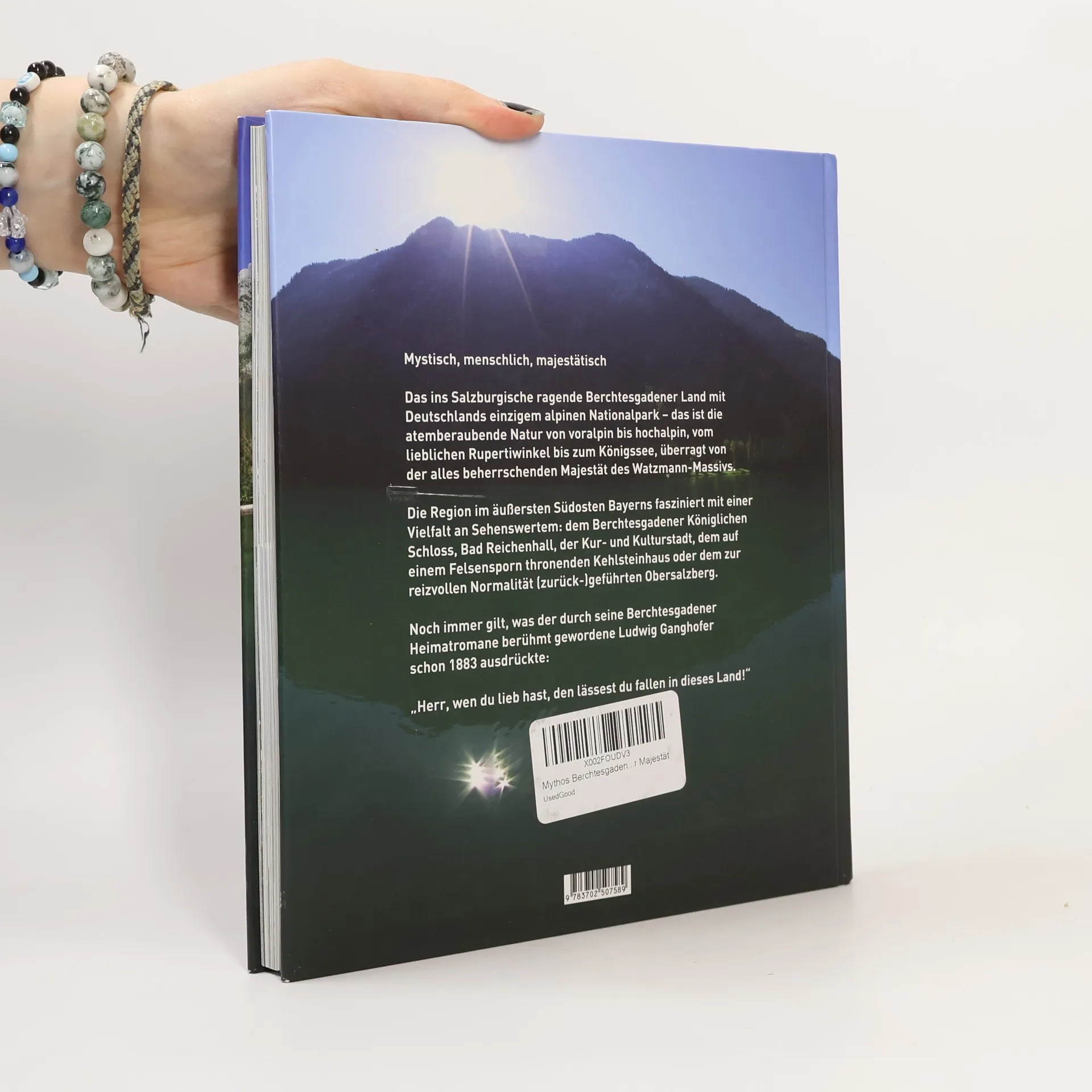 Mystisch, menschlich, majestätisch Das ins Salzburgische ragende Berchtesgadener Land mit Deutschlands einzigem alpinen Nationalpark in Bayerns südöstlichster Ecke – das ist vor allem die umgebende atemberaubende Natur von voralpin bis hochalpin, vom lieblichen Rupertiwinkel bis zum önigssee, überragt von der alles beherrschenden Majestät des Watzmann-Massivs, des Berchtesgadener Schicksalsberges mit der berüchtigten Ostwand und ihren Helden von einst und heute. Das Berchtesgadener Land fasziniert mit einer Vielfalt an Sehenswertem zu allen Jahreszeiten, gerühmt als „Oberbayerns touristisches Highlight“. Hierzu zählen unter anderem das auf einem Felsensporn thronende Kehlsteinhaus, der zur reizvollen Normalität (zurück-)geführte Obersalzberg, Deutschlands einziger alpiner Nationalpark, das Berchtesgadener Königliche Schloss, die Präsenz des Salzes als das „Weiße Gold“ nicht nur im Bergwerk, und Bad Reichenhall, die Kur- und Kulturstadt. Noch immer gilt unverändert, was der durch seine Berchtesgadener Heimatromane berühmt gewordene Ludwig Ganghofer schon 1883 mit diesen Worten ausdrückte: „Herr, wen du lieb hast, den lässest du fallen in dieses Land!“