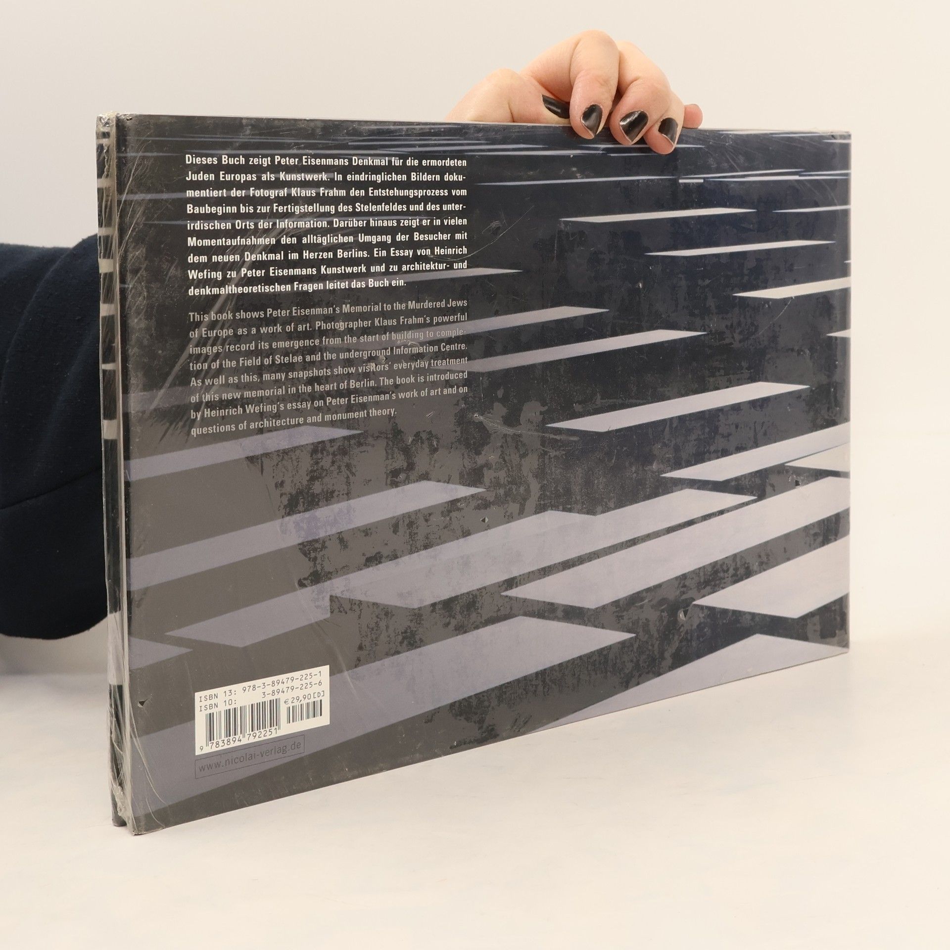 Gut drei Jahre lang, von Juni 2002 bis Juni 2005, hat der Hamburger Fotograf Klaus Frahm die Entstehung von Peter Eisenmans Denkmal für die ermordeten Juden Europas im Herzen Berlins mit der Kamera begleitet. Von den mehr als 800 dabei entstandenen Aufnahmen ist eine Auswahl in diesem Band versammelt. Die Fotos dokumentieren die wichtigsten Phasen des Projekts: vom Baubeginn bis zur Fertigstellung des gesamten Stelenfeldes und des Orts der Information. Die Bilder von Klaus Frahm zeigen darüber hinaus, wie nach seiner Eröffnung am 10. Mai 2005 Besucher auf das neue, ungewöhnliche Holocaust-Denkmal reagierten, wie sie es neugierig und ohne Scheu in Besitz nahmen. „Innerhalb kürzester Zeit ist das Denkmal für die ermordeten Juden Europas zu einer der wichtigsten Touristenattraktionen der Hauptstadt geworden. Von früh bis spät, selbst nachts noch, schlendern Menschen durch die Anlage, stehen an deren Rändern, legen Blumen ab, fotografieren. Auch von diesem alltäglichen Umgang mit dem Denkmal erzählt Klaus Frahms Bilder in vielerlei Variationen. Die seinerzeit vielfach belächelte Hoffnung von Bundeskanzler Gerhard Schröder, das Denkmal möge zu einem Ort werden, zu dem die Menschen gerne hingehen, hat sich auf überraschende Weise von Anfang an erfüllt.