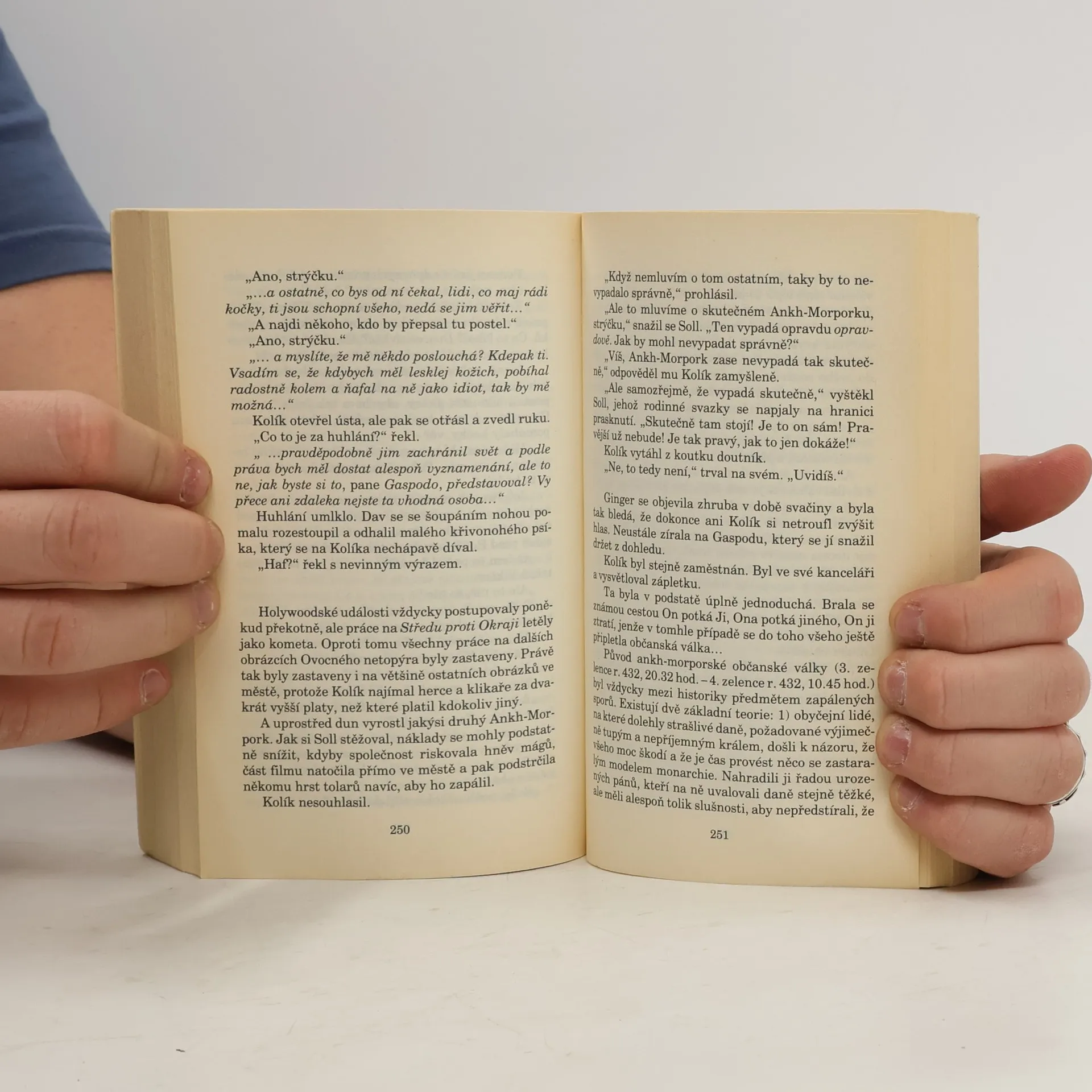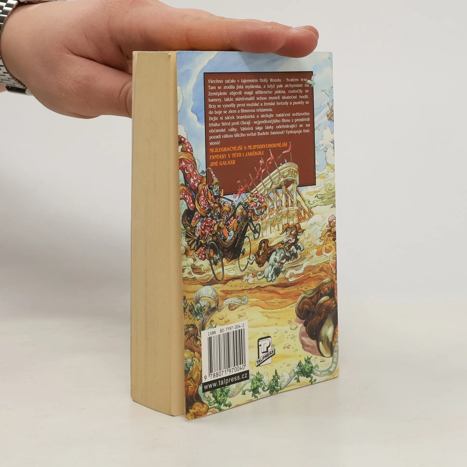 Všechno začalo v tajemném Holly Woodu - Svatém lese. Tam se zrodila jistá myšlenka, a když pak alchymisté na Zeměploše objevili magii stříbrného plátna, roztočily se kamery, takže skřeti-malíři sebou museli skutečně hodit. Brzy se vynořily první mužské a ženské hvězdy a pustili se do boje se zlem a filmovou reklamou. Dejte si sáček brambůrků a sledujte natáčení světového trháku Střed proti Okraji - nejpodivnějšího filmu z prostředí občanské války. Vášnivá sága lásky odehrávající se pozadí válkou šílícího světa! Budete žasnout! Vystupuje tisíc slonů!