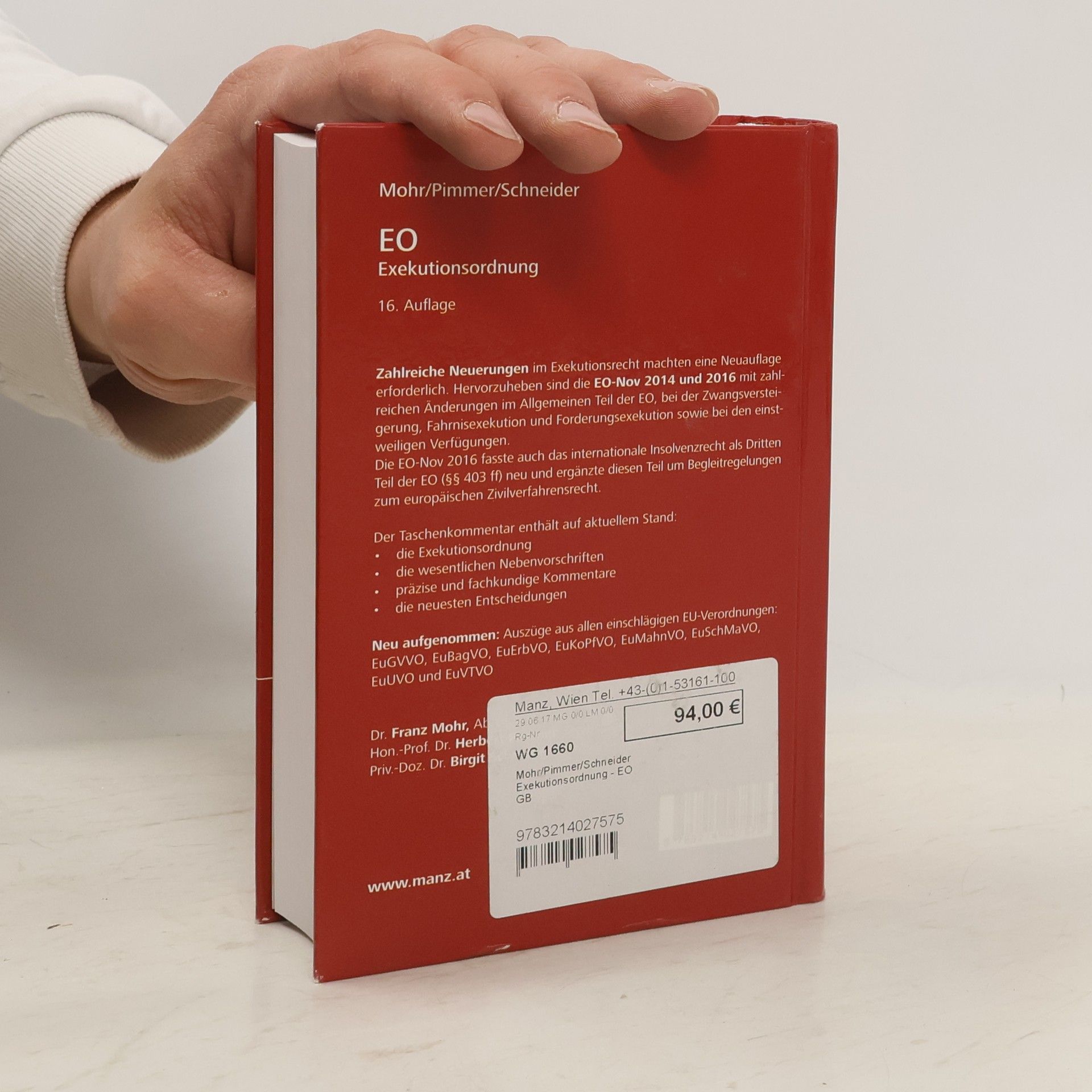 Das gesamte Exekutionsrecht im Überblick! Mit der EO-Novelle 2016 wurde die EO ua an die EuGVVO neu und die EuKoPfVO 2016 angepasst. Der Taschenkommentar enthält auf aktuellem Stand:• die Exekutionsordnung mit den wesentlichen Nebenvorschriften• präzise und fachkundig kommentiert• mit den neuesten EntscheidungenDarüber hinaus sind auch die geplanten Änderungen der EO durch das IRÄG 2017 bereits berücksichtigt. Neu in dieser Auflage: Auszüge aus allen einschlägigen EU-Verordnungen: EuGVVO, EuBagVO, EuErbVO, EuKoPfVO, EuMahnVO, EuSchMaVO, EuUVO und EuVTVO.