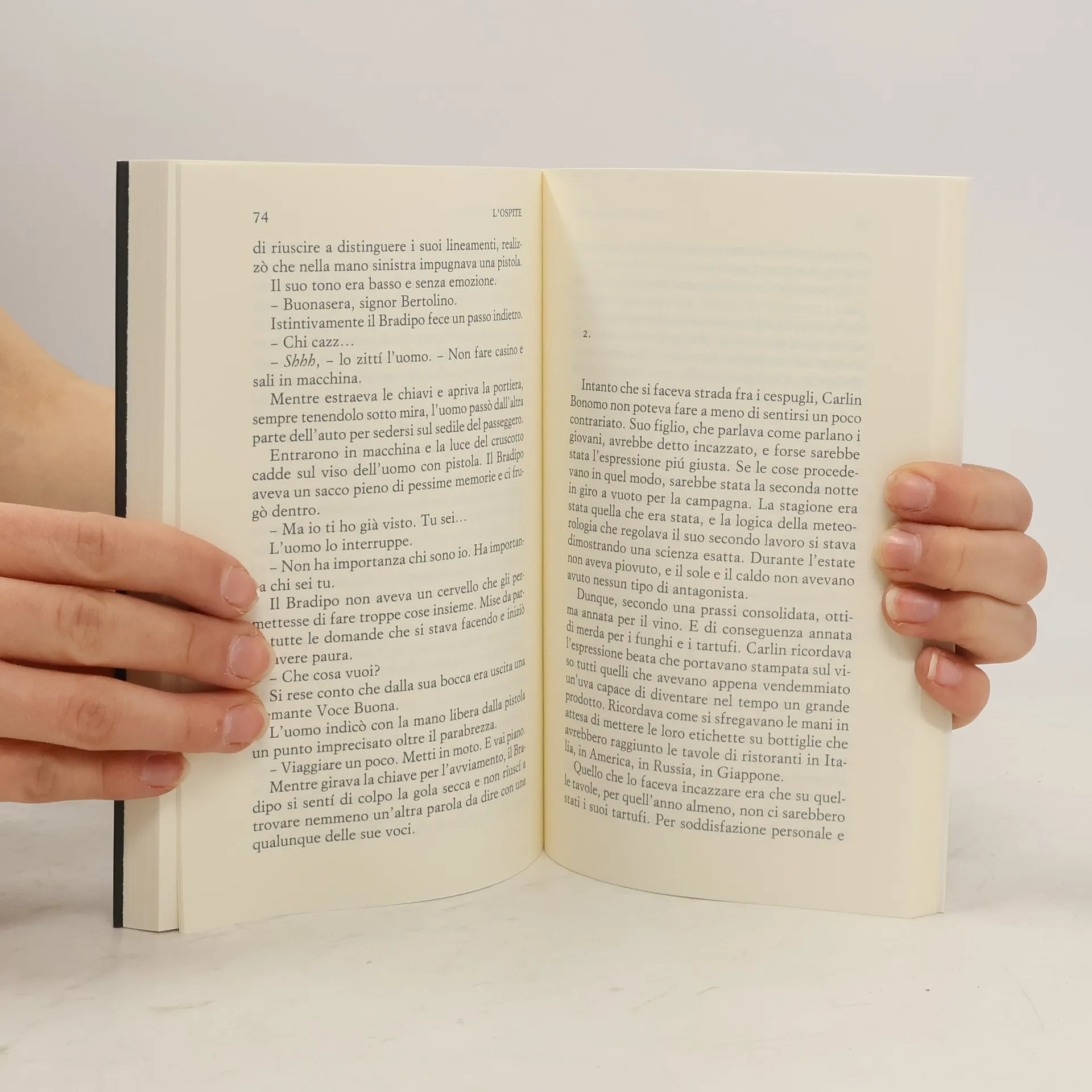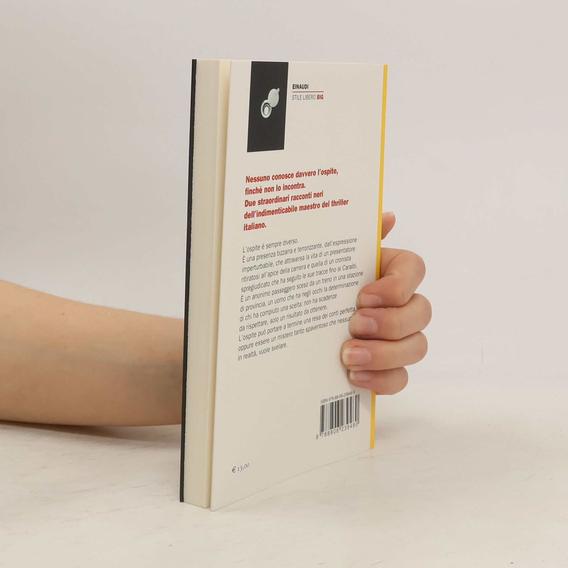 L'ospite è sempre diverso. È una presenza bizzarra e terrorizzante, dall'espressione imperturbabile, che attraversa la vita di un presentatore ritiratosi all'apice della carriera e quella di un cronista spregiudicato che ha seguito le sue tracce fino ai Caraibi. È un anonimo passeggero sceso da un treno in una stazione di provincia, un uomo che ha negli occhi la determinazione di chi ha compiuto una scelta: non ha scadenze da rispettare, solo un risultato da ottenere. L'ospite può portare a termine una resa dei conti perfetta, oppure essere un mistero tanto spaventoso che nessuno, in realtà, vuole svelare. «I suoi occhi erano davanti a me, con la stessa nitidezza della prima e unica volta in cui i nostri sguardi si erano incrociati, cosí vicini da poter distinguere nettamente le sue pupille, nelle quali il colore non era immobile, ma pareva in continuo movimento. Fu come affacciarsi per un attimo sul bordo di un pozzo, nel quale l'acqua che rifletteva la luna non fosse uno specchio piano, ma si muovesse come aspirata da un gorgo».