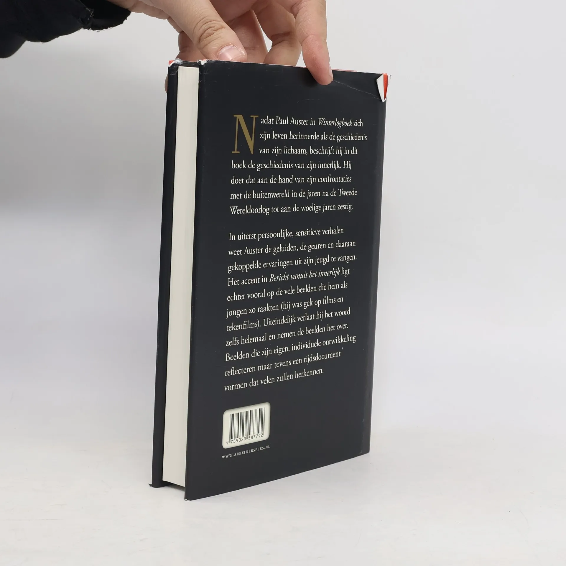 Koos Paul Auster in zijn vorige boek <em>Winterlogboek </em>de geschiedenis van zijn lichaam als onderwerp, in <em>Bericht vanuit het innerlijk</em> schrijft hij over zijn relatie tot de wereld buiten hemzelf. Hij roept geluiden, geuren en daaraan gekoppelde ervaringen uit zijn jeugd op via diep gevoelde verhalen en volgt zijn ontwikkeling naar volwassenheid in moreel, politiek en intellectueel opzicht, van de naoorlogse jaren tot aan de woelige jaren zestig. Uiteindelijk verlaat hij zelfs het woord en zijn het slechts beelden die zijn ontwikkeling reflecteren.