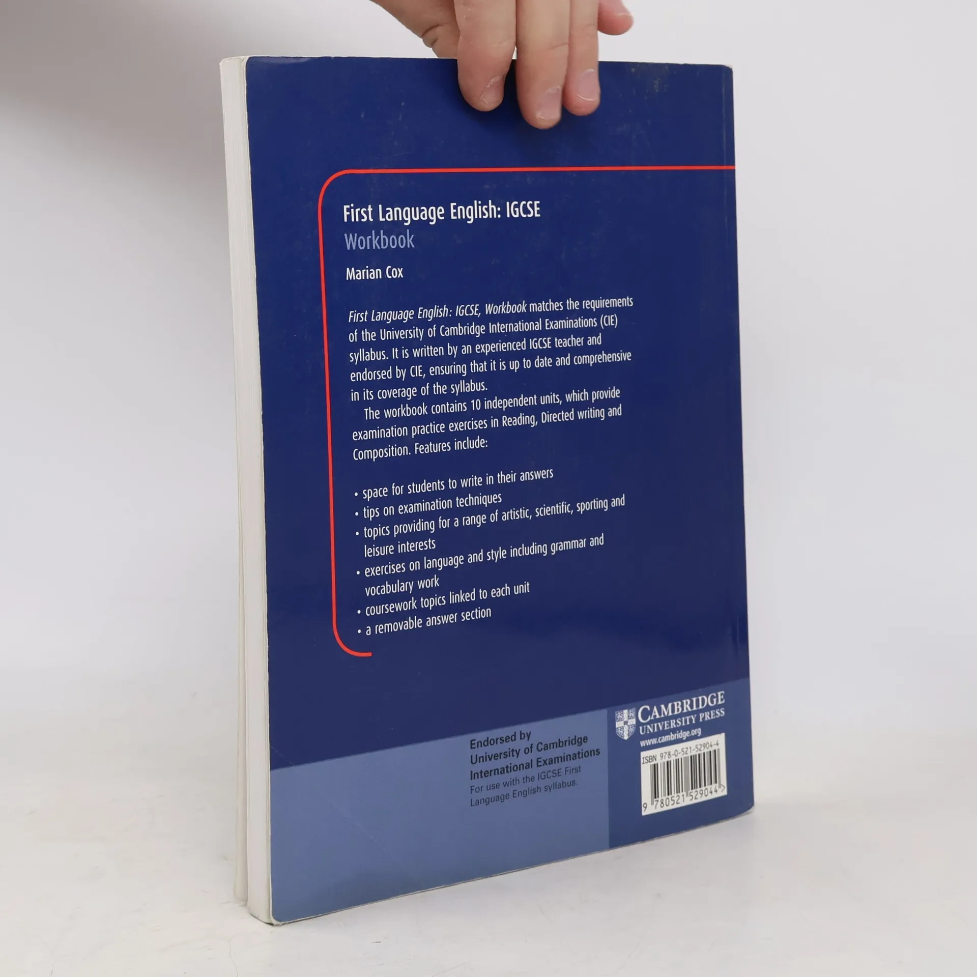 An exam preparation course that matches the requirements of the CIE syllabus. Matches the requirements of the 2005 University of Cambridge International Examinations (CIE) syllabus. Written by an experienced IGCSE teacher and examiner and endorsed by CIE, ensuring an up to date and comprehensive resource. The Student's Book is divided into four themed sections selected for their relevance to students worldwide: leisure, work, people and ideas. Imaginative exercises and exam tips build confidence and develop the skills needed to succeed in the examination. The Student Workbook provides examination practice exercises in reading, directed writing and continuous writing. Each unit practises the examination skills of skimming, scanning, selecting, collating, structuring and writing.