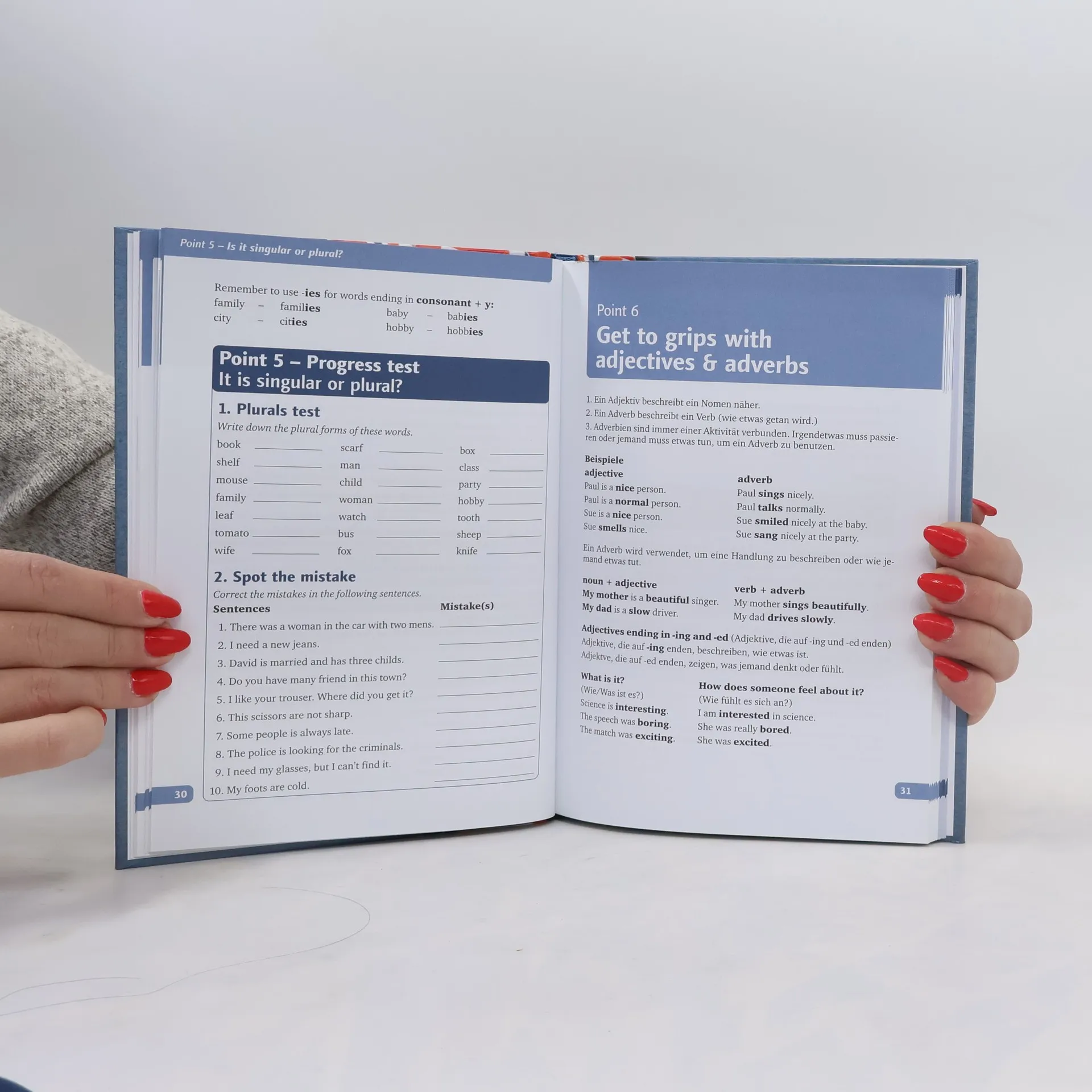 Dieser 20-Punkte-Plan zum Verlernen der häufigsten Fehler richtet sich in erster Linie an Schüler, die schnell und sicher bessere Noten in Englisch schreiben wollen, eignet sich aber auch für alle anderen, die ihr Englisch auffrischen oder rasch verbessern wollen. Denn der Plan ist übersichtlich, die Regeln sind klar formuliert und die Übungen sind effektiv. Für den Schüler heißt es ganz einfach: Lies das Buch sorgfältig durch (keine Angst: Der Autor ist Engländer und hat es mit viel britischem Humor gespickt!), mach die Übungen und schreib nie wieder eine Fünf! Für alle anderen gilt: Alle typischen Fehler aus der Schulzeit machen wir eh auch als Erwachsener noch! Die Themen: Rechtschreibung, Präpositionen, falsche Freunde, Satzverbindungen, Singular und Plural, Adjektive und Adverbien und so weiter von 1?20.