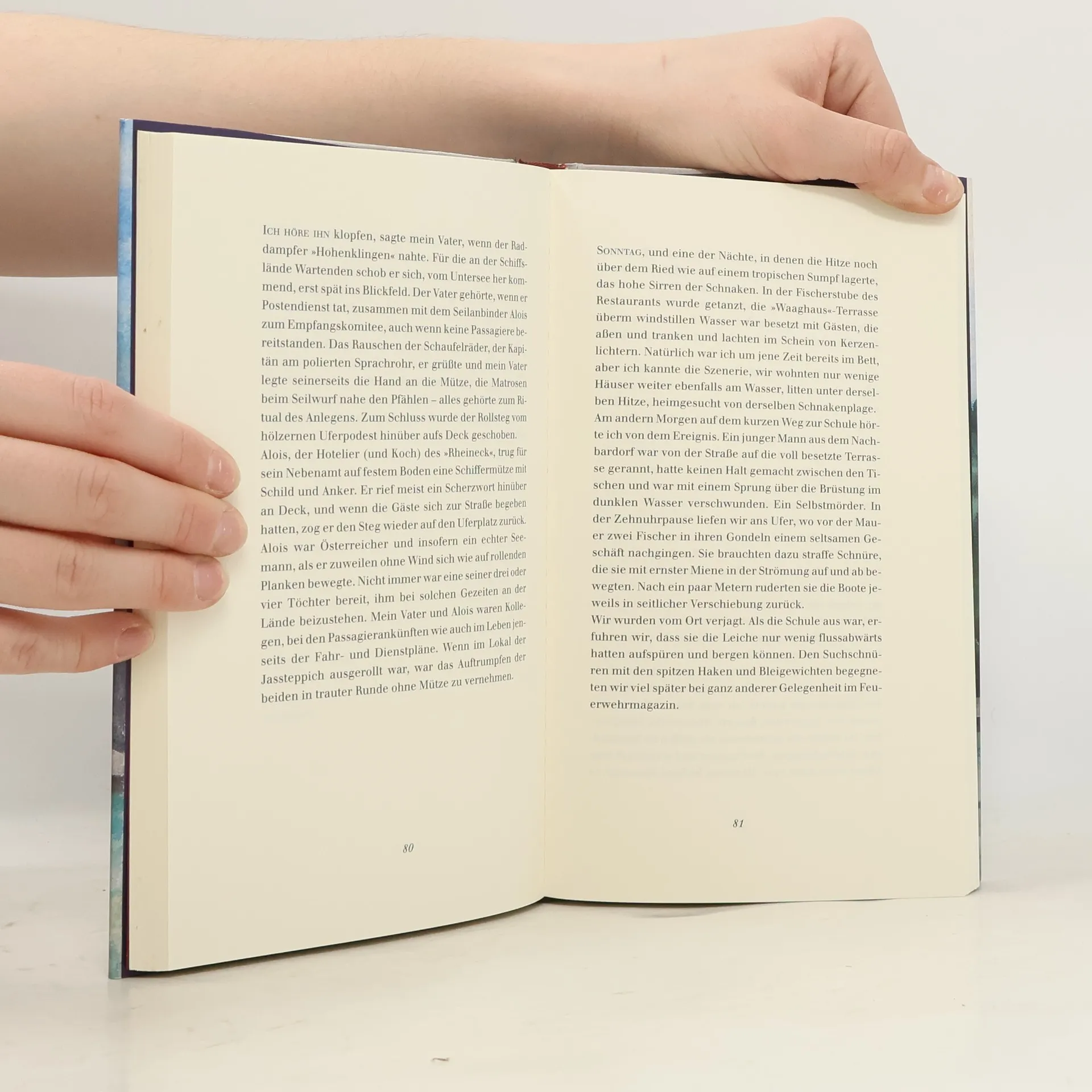 Eine Kindheit am Bodensee, zwischen 1930 und 1950, geprägt von der Strömung des Rheins und der Weite des Untersees. Hier, wo das Wasser in das Ried verschwindet, entstehen Bootswege ins Unbekannte, ein Ort für Verliebte und Jäger. Die Flussmitte wird zur Kriegsgrenze, als die Bedrohung vom deutschen Ufer wächst und Flüchtlinge das sichere Schweizer Ufer suchen. Der Vater, Grenzwächter in Gottlieben am Seerhein, beeinflusst das Kind, das früh ein Gespür für Bedrohung und Idylle entwickelt. Im kleinen Leben wird selbst das Gastspiel einer Blaskapelle zum Ereignis, während der Alltag der Fischer in gesellige Beizen führt. Sonderlinge wie der als Dichter geltende Baron von Bodman und der Emigrant Muehlon im alten Schloss, dessen Turm an die Gefangenschaft des Reformators Jan Hus erinnert, prägen die Umgebung. Walter Vollenweider reflektiert nach Jahrzehnten fern seiner Jugend am Bodensee über das Unbegriffene und Fremde, die Geheimnisse der Erwachsenen und die jahreszeitlichen Riten seiner Heimat, vom Maikäfer-Sammeln bis zum Entzünden der Weihnachtskerzen. Eine friedvolle Jugend im Krieg, die sich in sportlichen Herausforderungen und erotischen Annäherungen erprobt. Ein nostalgischer Rückblick in der Tradition nachdenklich erzählender Kindheitsbilder, die seit Walter Benjamins „Berliner Kindheit um 1900“ immer wieder zu schönen Büchern führen.