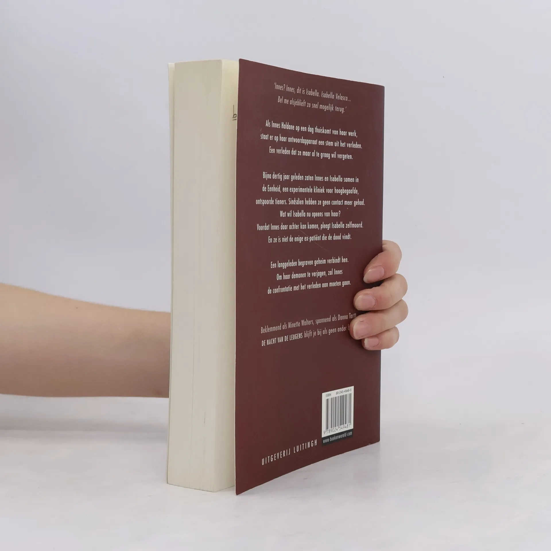 'Innes? Innes, dit is Isabella. Isabella Velasco... Bel me alsjeblieft zo snel mogelijk terug.' Als Innes Haldane op een dag thuiskomt van haar werk, staat er op haar antwoordapparaat een stem uit het verleden. Een verleden dat ze maar al te graag wil vergeten. Bijna dertig jaar geleden zaten Innes en Isabella samen in de Eenheid, een experimentele kliniek voor hoogbegaafde, ontspoorde tieners. Sindsdien hebben ze geen contact meer gehad. Wat wil Isabella nu opeens van haar? Voordat Innes daarachter kan komen, pleegt Isabella zelfmoord. En ze is niet de enige ex-patiënt die de dood vindt. Een lang geleden begraven geheim verbindt hen. Om haar demonen te verjagen, zal Innes de confrontatie met het verleden aan moeten gaan.