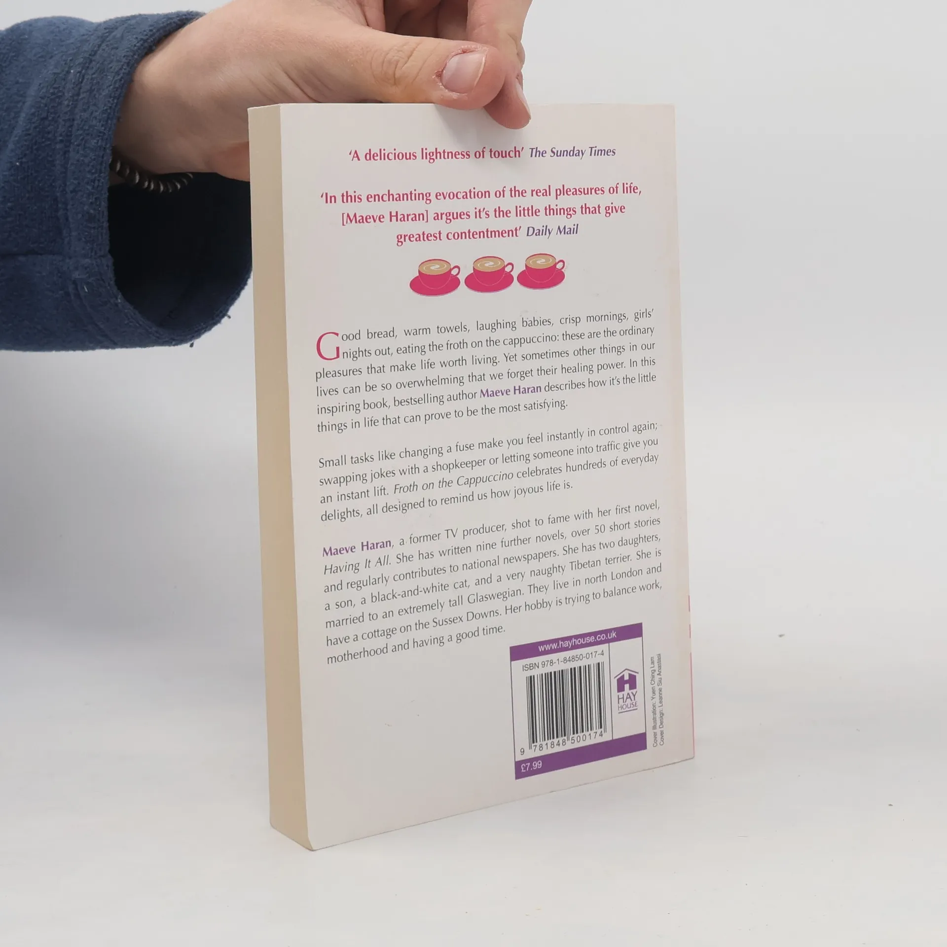 Всеки ден около нас се случват хубави неща – открийте ги, грабнете ги и се насладете на мига! Подарете си цветя Направете женско парти Сложете си грейка на краката Поплачете насаме Изберете си нов парфюм Пейте под душа Купете си обувки Прочетете тази книга Има ли нещо, което да е неморално или от което да не напълняваме много и да ни накара да почувстваме, че светът е прекрасен? Има – малките неща! Прясноизпеченият хляб Топлите хавлии Смехът на дете Свежите утрини Вечерите с момичетата навън Обирането на пяната на капучиното Това са всекидневните удоволствия, които ни припомнят колко забавен и пълен с наслада може да бъде животът! Магията на капучиното е както в приготвянето му, така и в пиенето. А истинската наслада от него идва, когато обираме пухкавата му пяна. Мейв Харън, телевизионен продуцент, става известна с първия си роман Having it All. Написала е други 9 романа и над 50 разказа, често пише и за националните всекидневници. Има две дъщери и син, бяла и черна котка, и много палав териер. Омъжена е за невероятно висок мъж от Глазгоу. Семейството живее в Северен Лондон. Хобито на Харън е вечният опит да балансира работата, грижата за семейството и свободното време. ИК “Кръгозор”, 208 стр., луксозно оформление, с частичен лак, цена: 12 лв.