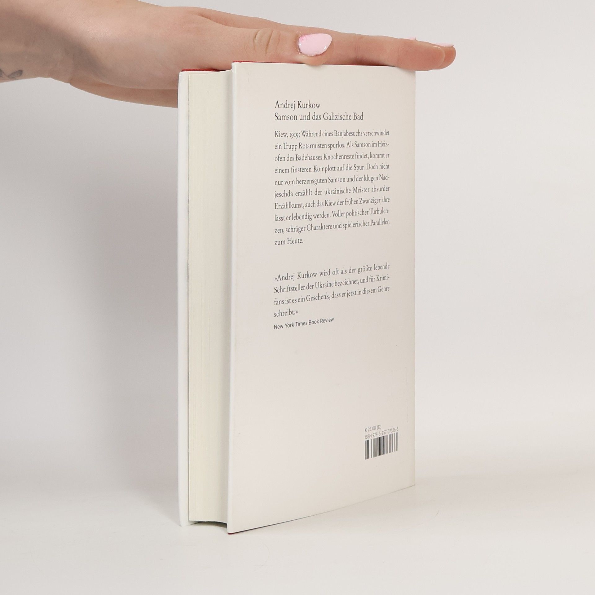 Kiew, 1919: Ein Trupp Rotarmisten ist spurlos verschwunden, mitten in der Stadt, während eines Banjabesuchs. Als Samson im Heizofen des Badehauses Knochenreste findet, kommt er einem finsteren Komplott auf die Spur. Auch im dritten Band um den herzensguten Samson und die kluge Nadjeschda lässt der ukrainische Meister absurder Erzählkunst das Kiew der frühen Zwanzigerjahre lebendig werden. Voller politischer Turbulenzen und schräger Charaktere und spielerischer Parallelen zum Heute.