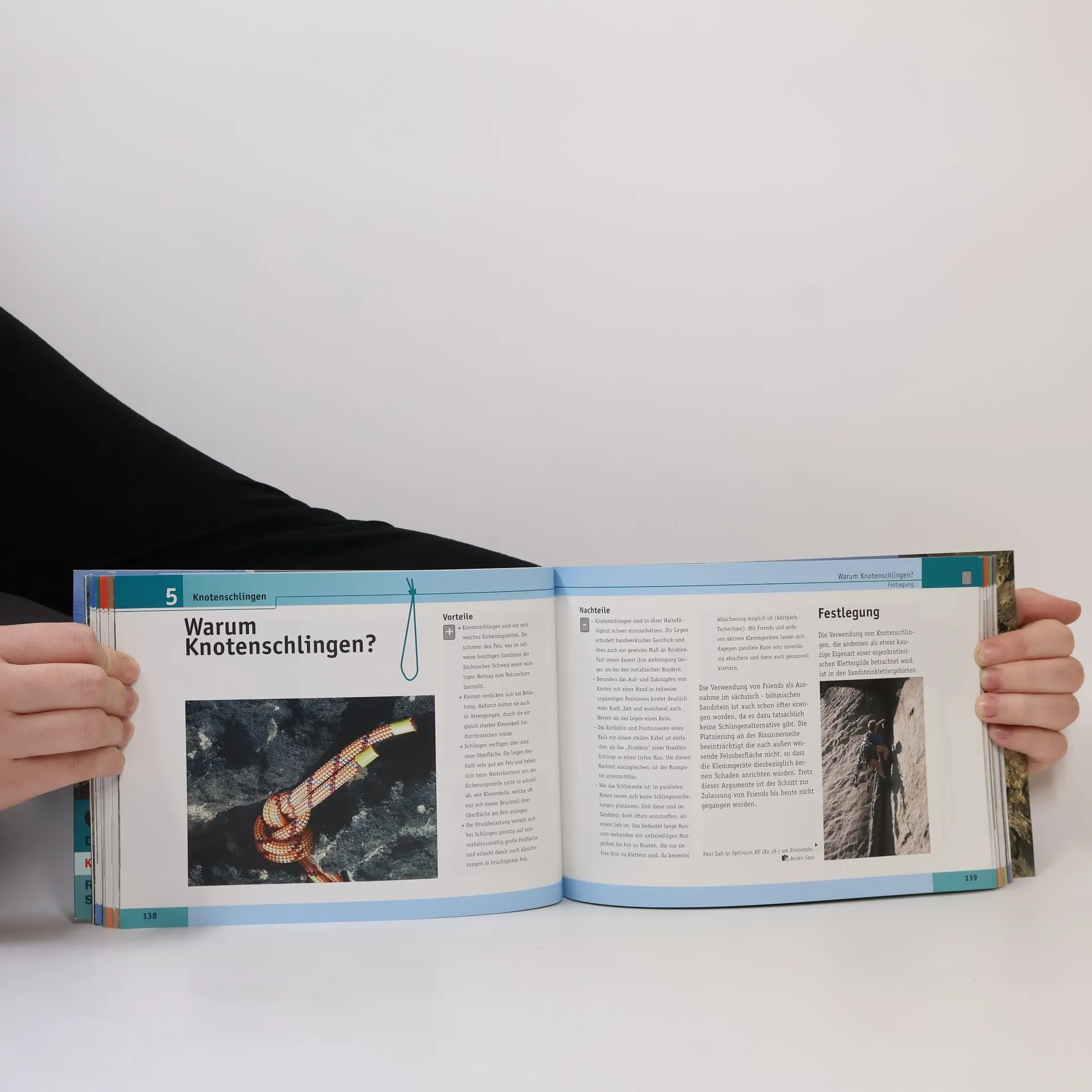 Kinderkopf und Affenfaust ist das erste spezielle Knotenbuch für`s Klettern. Alle für Klettern und Bergsteigen relevanten Knoten werden praxisorientiert erklärt und demonstriert. Darüber hinaus werden die Themenbereiche Seile, Schlingen und Gurte, also die gesamte "Software" des Klettersports tiefgründig behandelt. Fragen wie "Kann ein Seil reißen?" oder "Was ist ein Sturzfaktor?" werden nachvollziehbar besprochen und mit zahlreichen Abbildungen verdeutlicht. Sichern und Abseilen werden praxisnah erläutert, Tricks und Kniffe gezeigt, die es in keinem anderen Kletterlehrbuch zu finden gibt. Hochwertige Fotos und Zeichnungen zum besseren Reproduzieren der dargestellten Knoten und Sicherungstechniken bilden das Grundgerüst des Buches. Ein Sonderkapitel beschäftigt sich mit dem Phänomen der "Knotenschlingen in den Sandsteinklettergebieten". Dieses Thema wurde in der Fachliteratur letztmalig 1962 behandelt und liegt seitdem brach. Damit schließt "Kinderkopf und Affenfaust" eine lang bestehende Kenntnislücke und hat somit gute Chancen, zum Standardlehrbuch im Bereich "Klettersoftware" zu werden. Weitere Themen sind Klettern und Sichern von Mehrseillängenrouten sowie Bergrettung und Spezialseile.