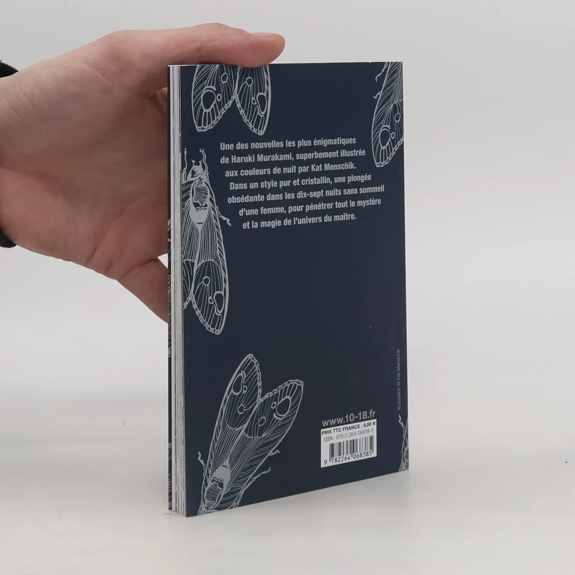 Envoûtante et onirique, une des nouvelles les plus énigmatiques de Haruki Murakami, superbement illustrée aux couleurs de nuit, par Kat Menschik. Dans un style pur et cristallin, une plongée obsédante dans les dix-sept nuits sans sommeil d?une femme, pour pénétrer tout le mystère et la magie de l'univers du maître. « Du pur Murakami. » Elle Traduit du japonaispar Corinne Atlan Né à Kyoto en 1949, Haruki Murakami est le traducteur japonais de Scott Fitzgerald, Raymond Carver et John Irving. Ne supportant pas le conformisme de la société japonaise, il s'est expatrié en Grèce, en Italie puis aux États-Unis. En 1995, après le tremblement de terre de Kobe et l'attentat du métro de Tokyo, il a décidé de rentrer au Japon. Haruki Murakami a rencontré le succès dès la parution de son premier roman, Écoute le chant du vent (1979), qui lui a valu le prix Gunzo. Suivront notamment Chroniques de l'oiseau à ressort, Au sud de la frontière, à l'ouest du soleil, Les Amants du Spoutnik, Kafka sur le rivage et Le Passage de la nuit. Il signe aujourd?hui une trilogie, 1Q84, dont les deux premiers tomes paraissent chez Belfond en 2011 et le dernier tome en 2012. Plusieurs fois favori pour le prix Nobel de littérature, Haruki Murakami est aujourd'hui un auteur culte au Japon et son ?uvre est traduite dans plus de trente pays.