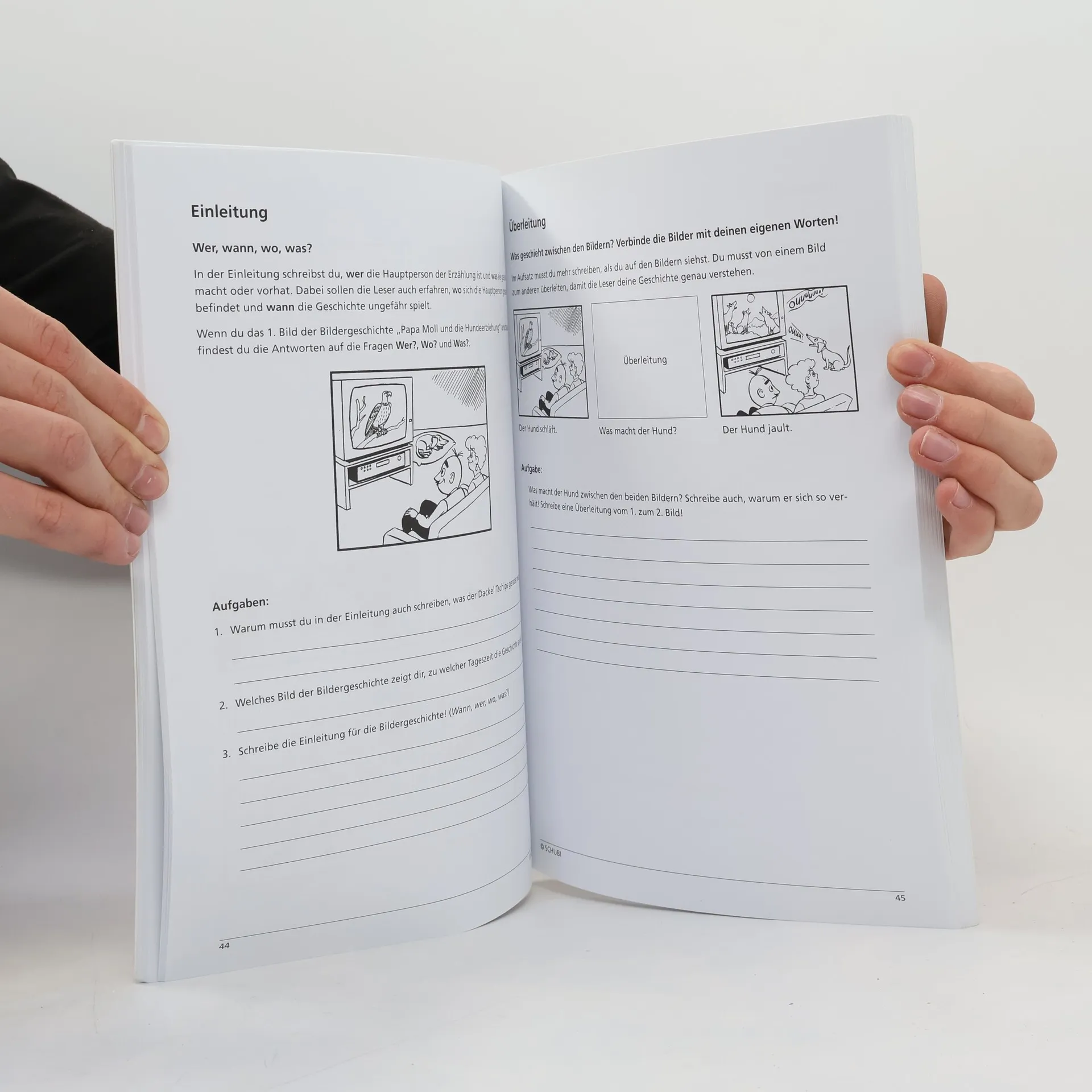 Wege zur lebendigen Erzählung Wie soll ich meinen Aufsatz anfangen? Was ist wichtig? Wie geht das: lebendig schreiben? Wie wird meine Geschichte spannend? Wer selbst keinen unmittelbaren Zugang zum Schreiben findet, ist froh über Strukturen, die Orientierung geben. In diesem Praxisbuch wird systematisch der Aufbau einer Erzählung mithilfe von Bildergeschichten aufgezeigt und eingeübt. Den Schülerinnen und Schülern werden nicht nur Leitlinien an die Hand gegeben, sondern diese Leitlinien werden auch durchgehend an Beispielen deutlich und erfahrbar gemacht. Die Arbeitsblätter führen die Kinder von der Einleitung bis zum Schluss jeder Bildergeschichte und machen eine klare Struktur und den Einsatz sinnvoller Stilmittel bewusst. Die Musteraufsätze zeigen, wie ein Text gestaltet werden kann, und vermitteln so, was mit dem Ratschlag „schreibe lebendig" gemeint ist. Inhalt: 143 Seiten A4: Allgemeine Hinweise für die aufbauende Textarbeit mit Bildergeschichten; 8 Bildergeschichten als Kopiervorlagen; zu jeder Bildergeschichte Übungsblätter zu Einleitung, Spannungsaufbau, Höhepunkt, Schluss; Musteraufsätze zu jeder Bildergeschichte; ergänzende Arbeitsblätter zu Satzanfängen, wörtlicher Rede und Wortschatz. Dieses Praxisbuch enthält je 1-2 Geschichten aus den folgenden Bilderboxen: • Der kleine Herr Jakob • Papa Moll • Sentimage • Und dann…? 2 • Lea, Lars und Dodo. Geeignet für : Deutsch, ab 3. Schuljahr