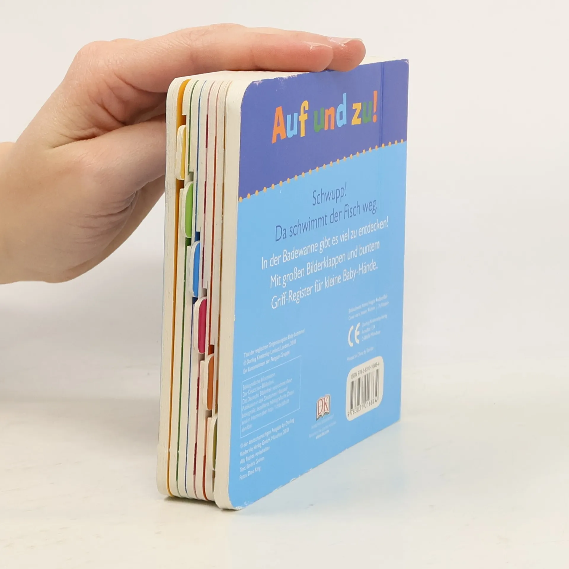 Die stabilen Papp- und Spielbilderbücher von DK machen einfach alles mit und halten zudem lustige Überraschungen bereit! Einfache Fragen, süße Farbfotos rund um das Thema Badewannenspaß und lustige Reime, die es hinter den Klappen zu entdecken gibt, animieren zum Ansehen und Mitraten. Die individuell gestalteten Seiten bieten durch farbigen Hintergrund, Streifen oder Punkte viel Abwechslung. Die praktischen Griff-Register ermöglichen Kindern ein selbstständiges Öffnen der Klappen und bescheren so motivierende Erfolgserlebnisse. Auf und zu! - der ultimative Klappspaß für die Kleinsten! Ab 1 Jahr.