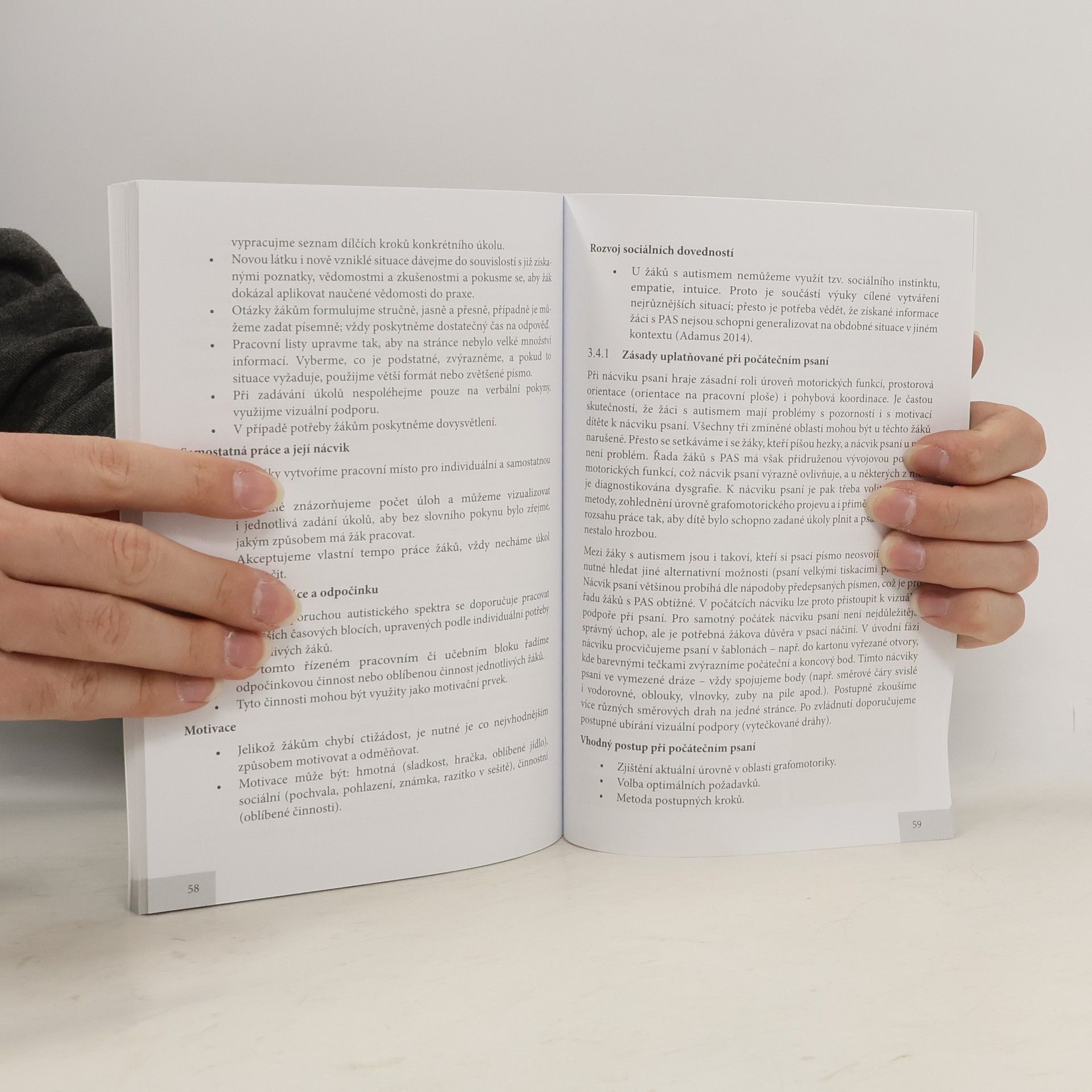 Tento metodický materiál je věnován poznatkům, radám a doporučením důležitým pro výchovu a vzdělávání dětí, žáků a studentů s poruchou autistického spektra. Vzhledem k obsáhlosti tématu není záměrem této publikace poskytnout vyčerpávající přehled speciálně-pedagogických metod a přístupů k žákům s autismem. Cílem je nabídnout pedagogickým pracovníkům takové postupy, které budou moci využít při své náročné každodenní práci. V úvodních kapitolách metodiky jsou popsány speciální vzdělávací potřeby žáků s PAS, následuje popis podmínek inkluzivního vzdělávání a to od nutnosti úprav organizace vzdělávání, prostorové a materiální předpoklady až po nezbytné personální a sociální zajištění. V dalších kapitolách jsou popsány zásady nutné pro nácviky sociálních a komunikačních dovedností a základní principy strukturovaného učení, které je u žáků s poruchou autistického spektra v praxi využíváno. Většina dětí s autismem, vzhledem k deficitům vyplývajícím z autistické triády, trpí ve větší či menší míře problémy v chování. Více než polovina z nich dokonce tak závažnými, že vyžadují využití různých strategií k jejich eliminaci. Popisem a praktickým využitím těchto strategií se věnuje závěrečná kapitola tohoto metodického materiálu.
