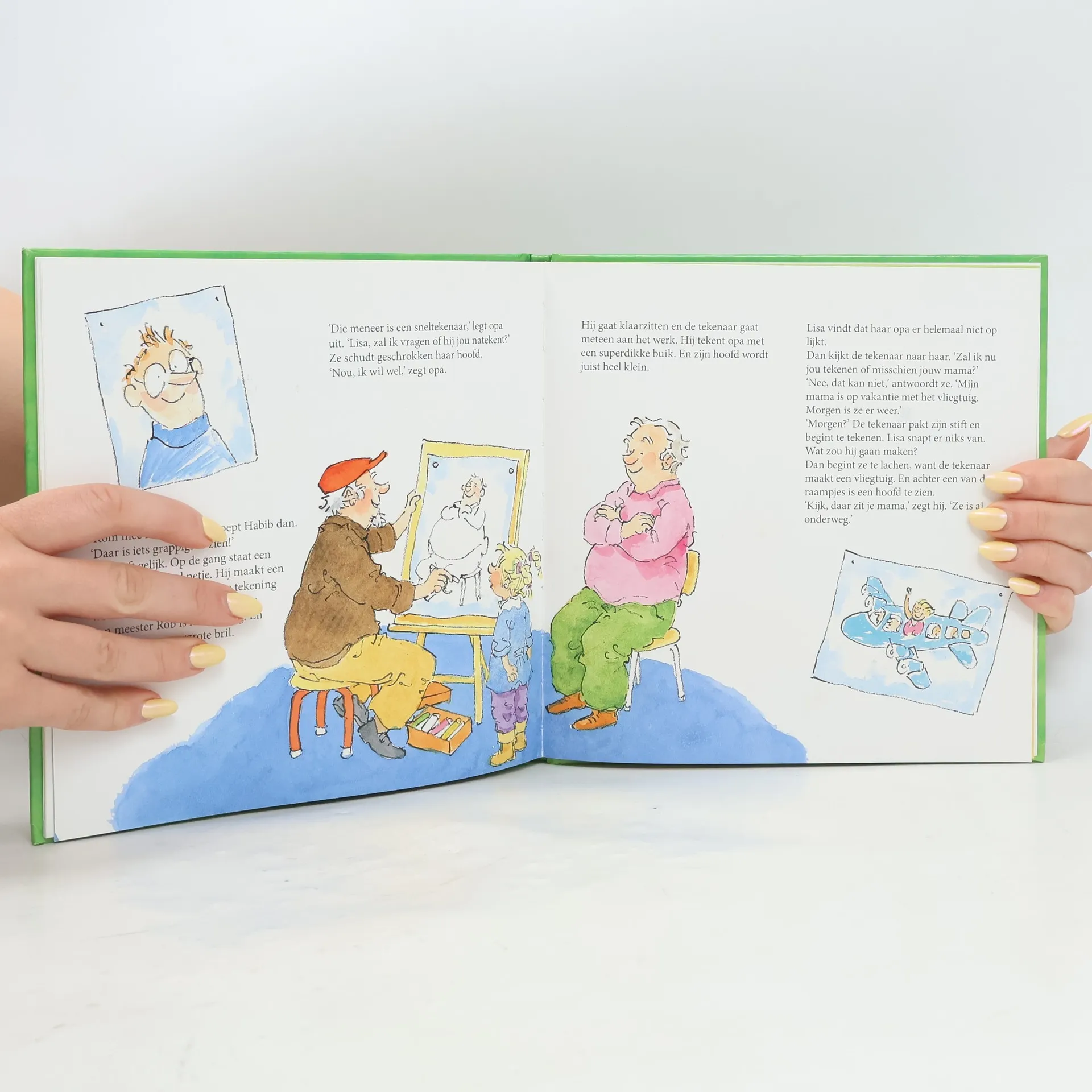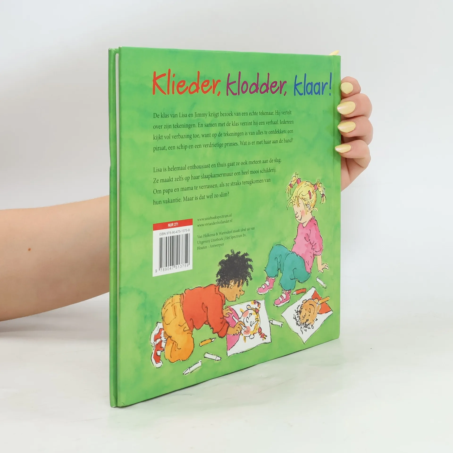 In de klas van Lisa en Jimmy komt een illustrator op bezoek. Hij vertelt over zijn werk en bedenkt samen met de kinderen een verhaal. Lisa krijgt de smaak te pakken. Prentvertelling met vrolijke kleurenillustraties. Vanaf ca. 4 jaar.