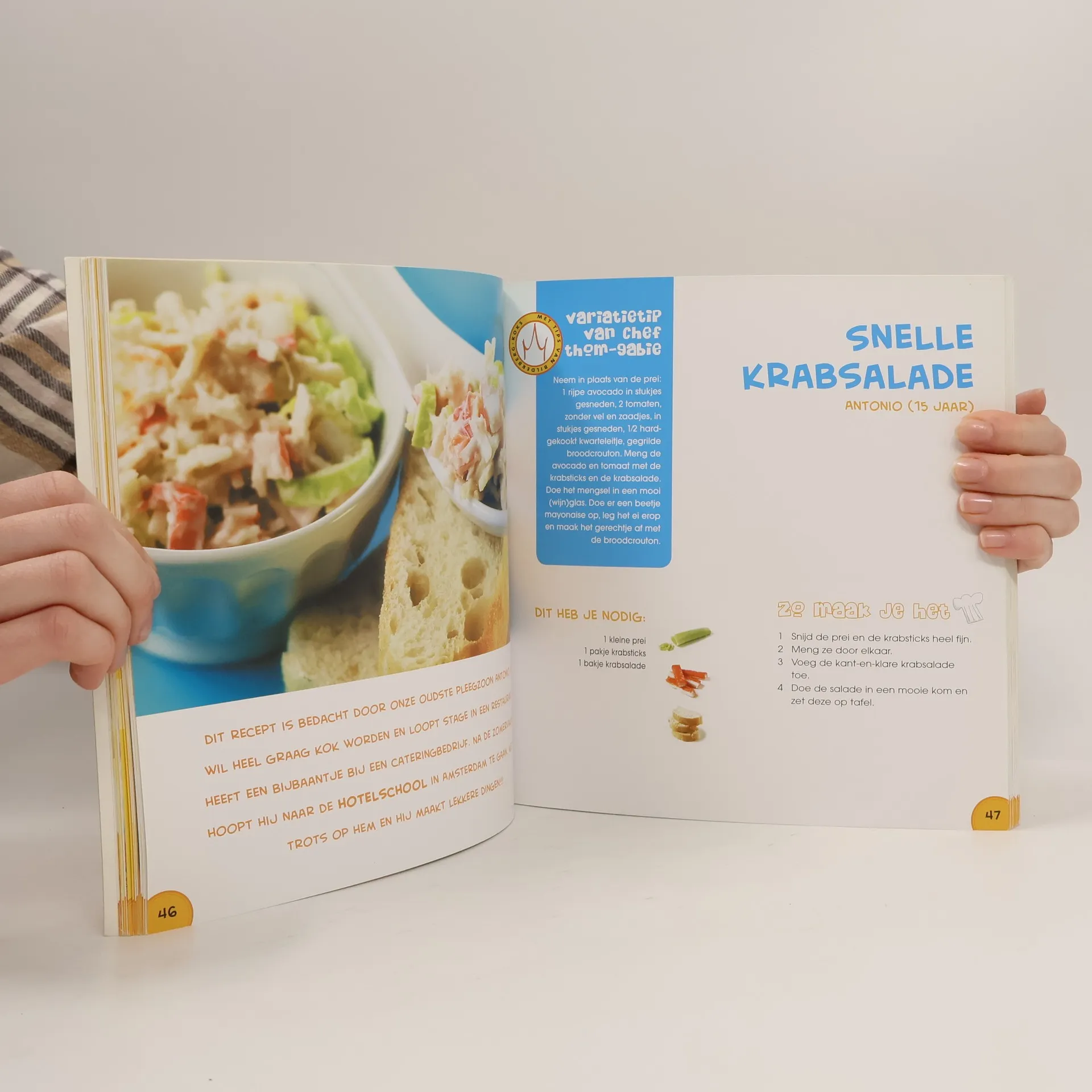 Stapsgewijs wordt uitgelegd hoe je eenvoudige recepten van allerlei gerechten kunt maken, ook uit andere culturen. Met kleurenfoto's van de eindresultaten. Vanaf ca. 9 jaar; enige begeleiding is wenselijk.