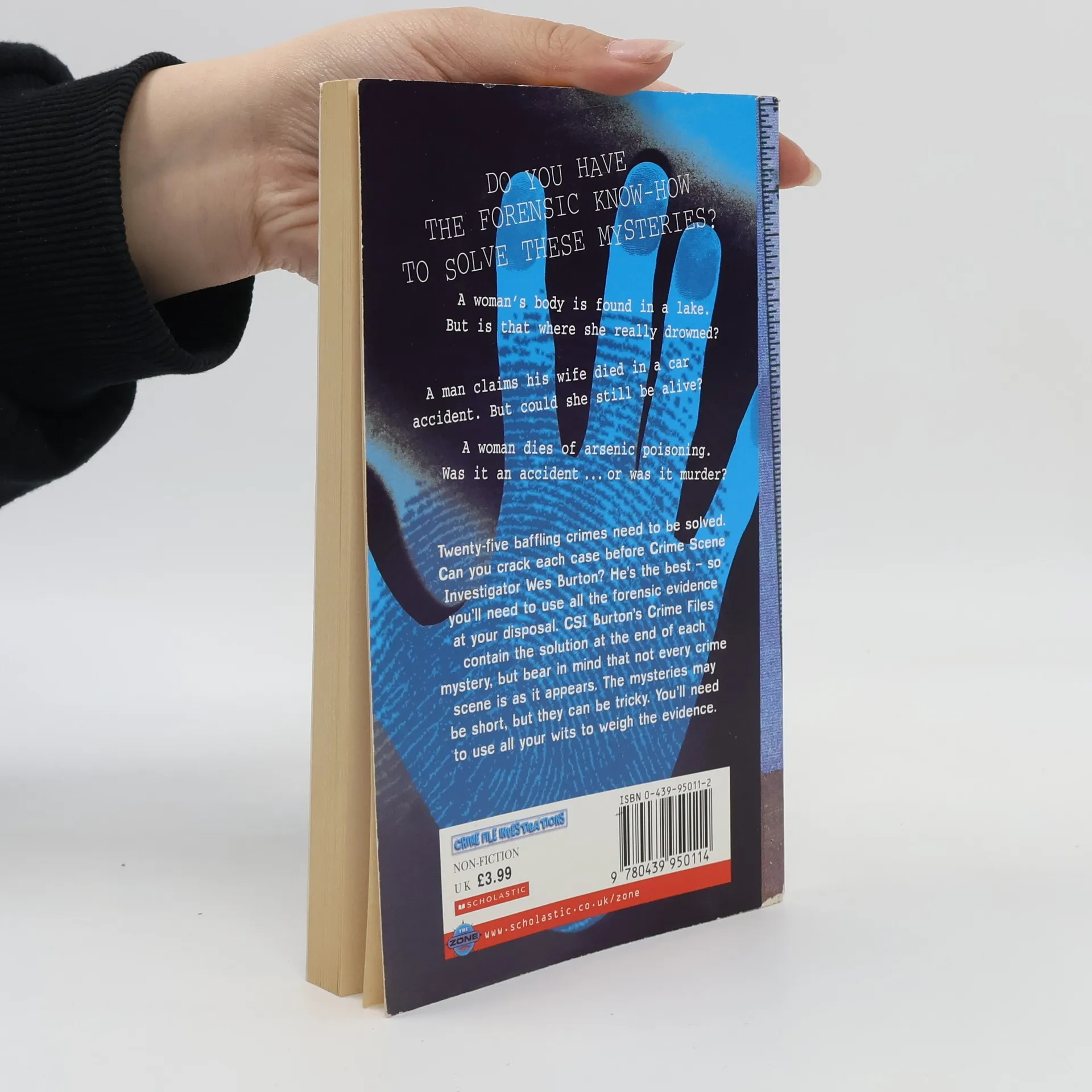 An updated version of Donold Sobol's TWO-MINUTE MYSTERIES, investigated by a CSI using modern forensic techniques rather than old-fashioned sleuthing. Four-minute forensic mysteries are solved by a cast of quirky but lovable characters. Their wisecracking leader is CSI Wes Burton who carries his evidence-gathering tools with him to each crime scene and loves his work solving problems. Crime scenes include everything from exploding flour in a restaurant kitchen, to a boy who lies about eating a piece of cake, to a man who dies accidentally while tanning himself. Burton and his coworkers use science to prove that strangulation with a towel leaves unique imprints, that antique flowers are deadly, and that insects can tell a good story.