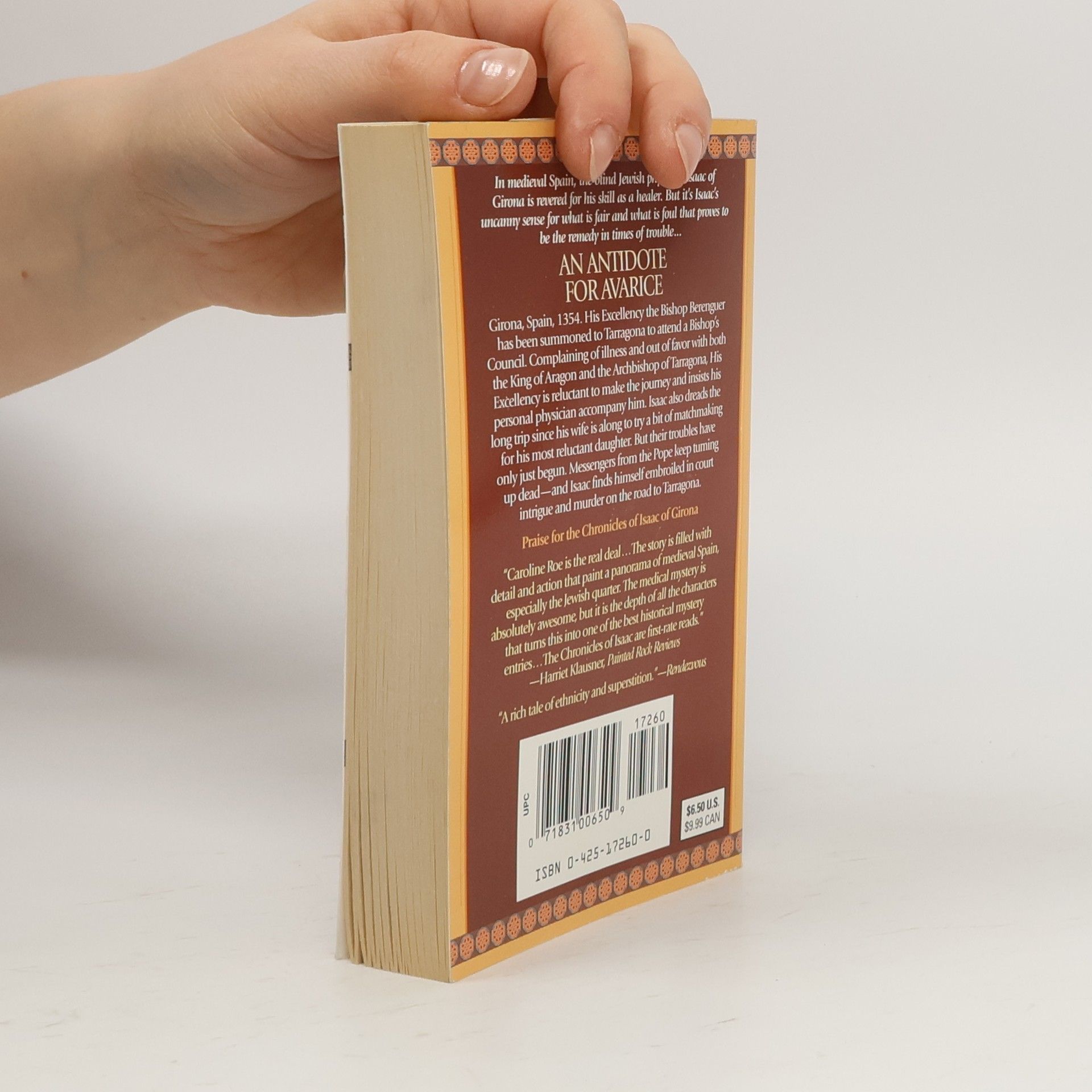 The author of An Antidote for Avarice continues the intriguing adventures of blind Jewish physician Isaac of Gerona. In medieval Spain, Isaac heads the search for the fabled Holy Grail -- and an unholy killer...